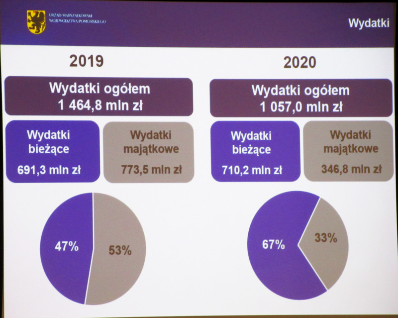 W przyszłorocznym budżecie dochody i wydatki będą niższe o około 259 mln niż w bieżącym roku. W 2020 roku dochody budżetu wyniosą 1 027 365 603 zł. Zazwyczaj te środki pochodziły z wewnątrz: z udziału w podatku dochodowym od osób prawnych (CIT) i fizycznych (PIT), subwencji, dochodów własnych i dochodów z majątku województwa lub ze źródeł zewnętrznych, takich jak dotacje i środki z Unii Europejskiej. Z kolei wydatki kształtować się będą na poziomie 1 056 965 603 zł.