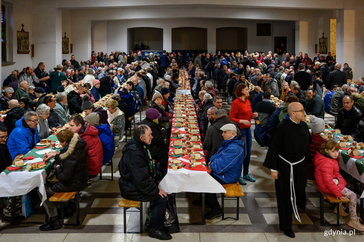 Tradycyjne potrawy, dzielenie się opłatkiem i wspólne kolędowanie – to nieodłączne elementy wigilii dla samotnych i potrzebujących organizowanej przez prezydenta Gdyni Wojciecha Szczurka. Jak co roku odbyła się ona 24 grudnia o godz. 15.00 w dolnym kościele oo. Franciszkanów. Nikt nie wyszedł z niej z pustymi rękoma. Po kolacji gościom rozdano świąteczne paczki.