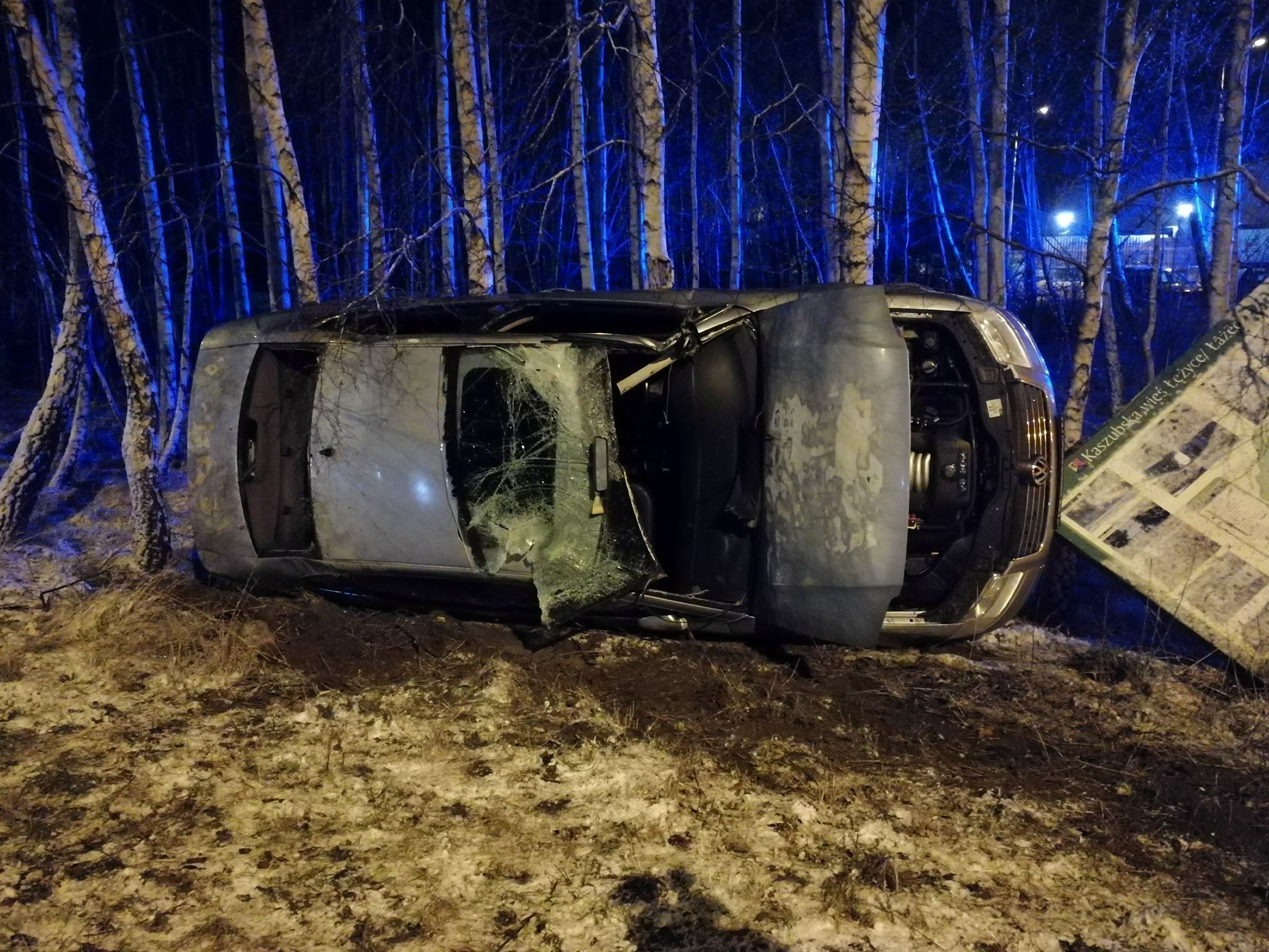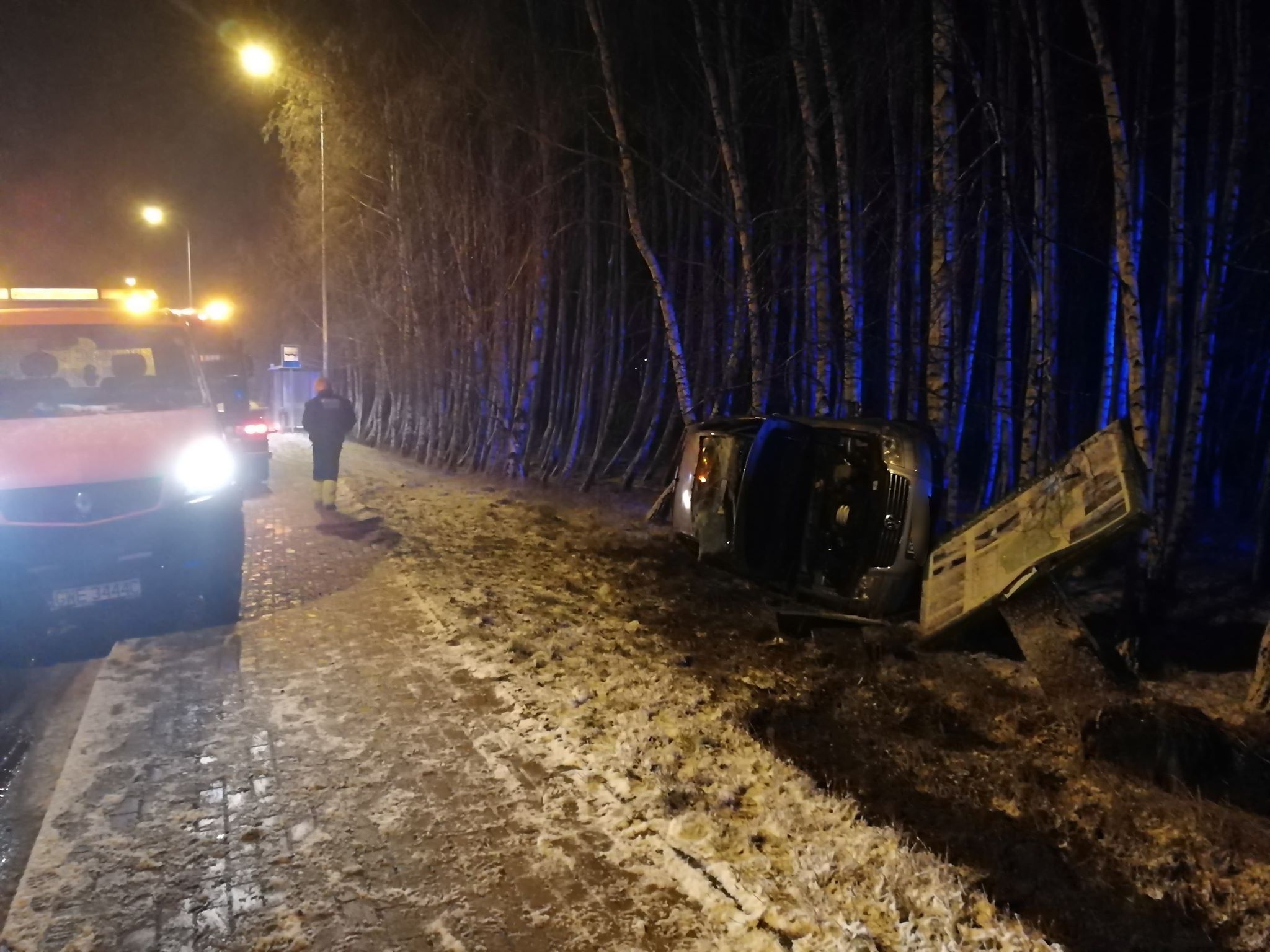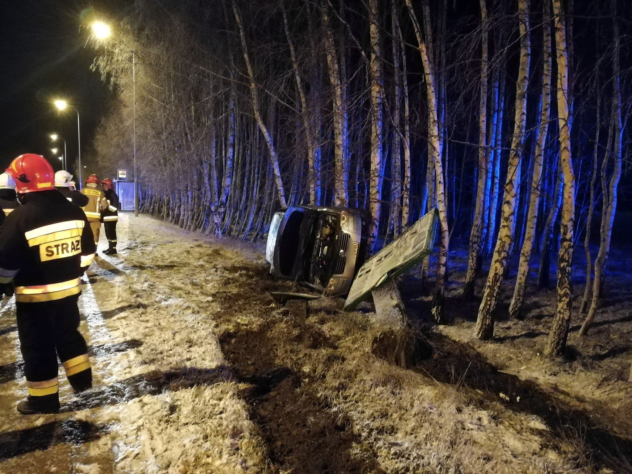 Do zdarzenia doszło w sobotę 4 stycznia w Łężycach. Samochodem osobowym podróżowały dwie osoby. Prawdopodobnie na skutek złych warunków na drodze doszło do dachowania pojazdu.