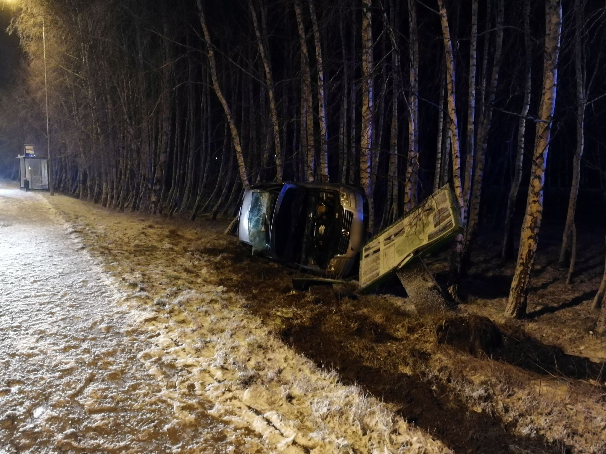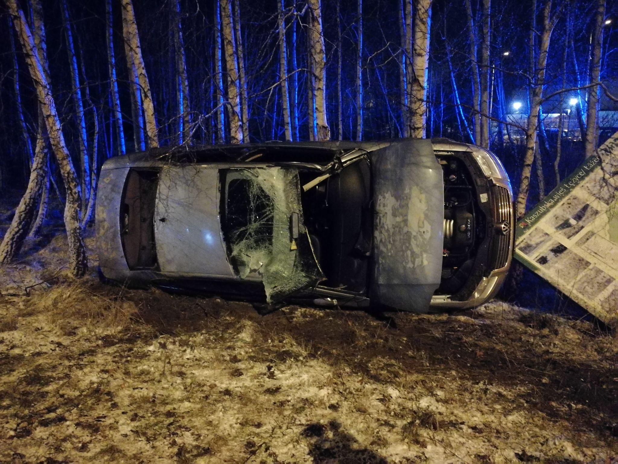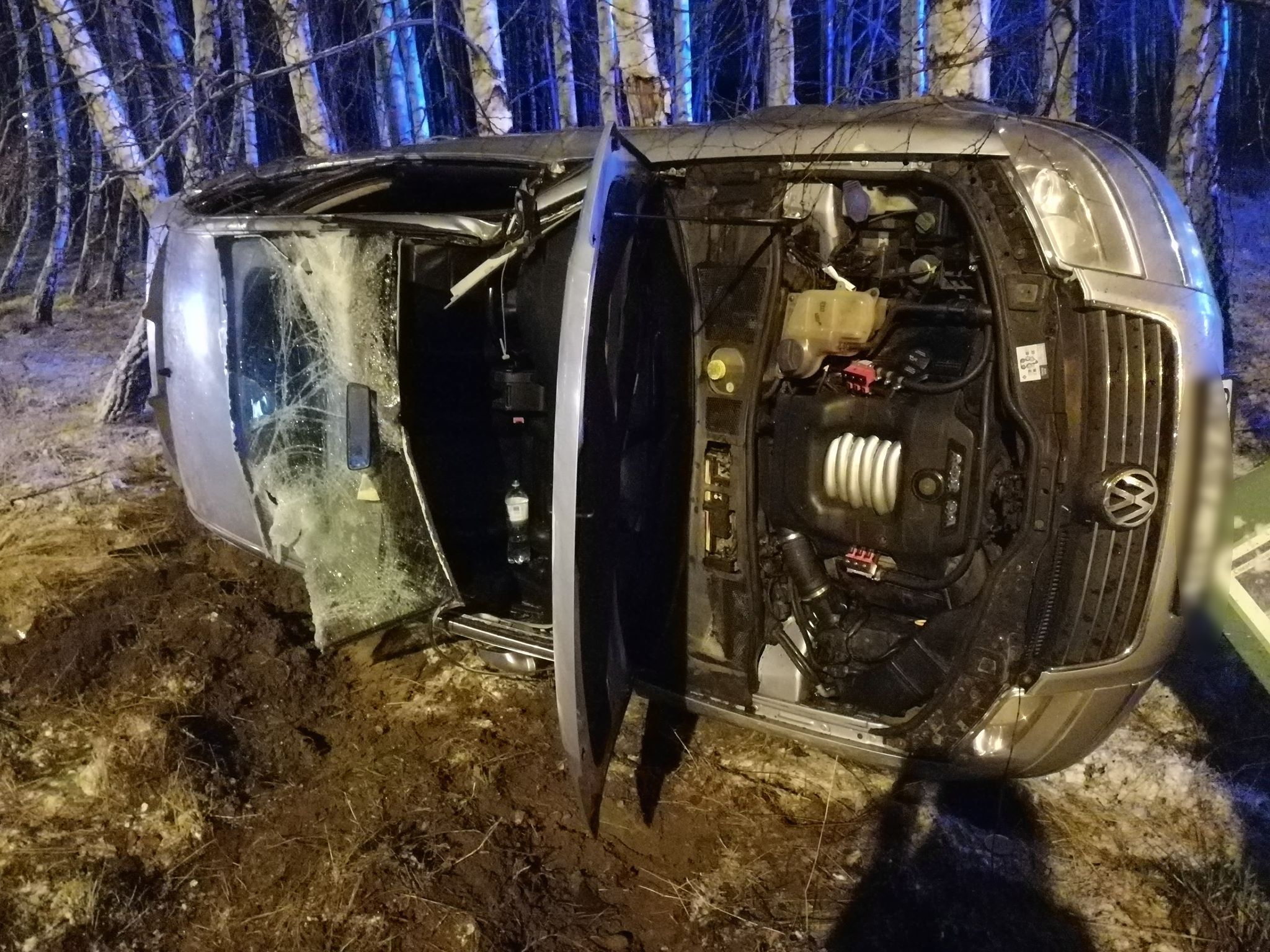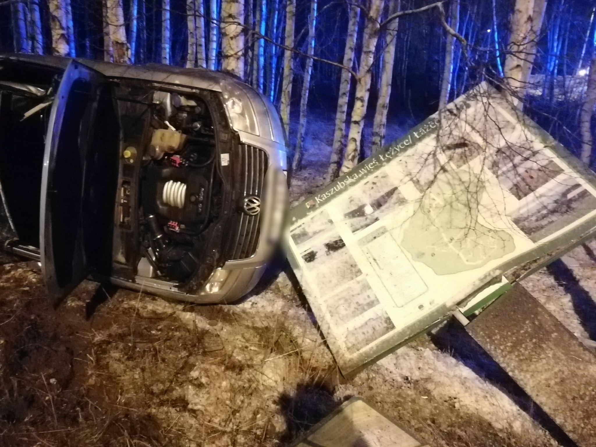 Do zdarzenia doszło w sobotę 4 stycznia w Łężycach. Samochodem osobowym podróżowały dwie osoby. Prawdopodobnie na skutek złych warunków na drodze doszło do dachowania pojazdu.