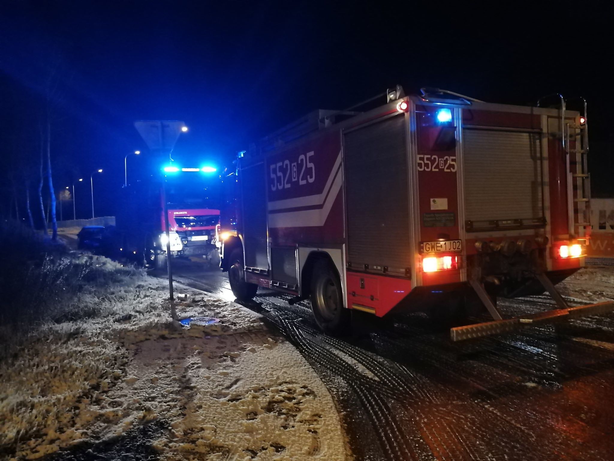 Informacja o groźnym wypadku do służby dotarła pod wieczór. Na miejsce wysłano m.in, strażackie wozy bojowe.