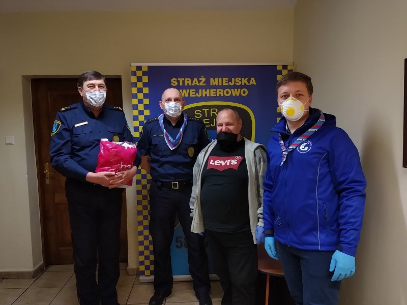 W czwartek (17 kwietnia) strażnicy miejscy mieli dość nietypowe odwiedziny. Komendę odwiedził druh Dawid Schwann, komendant Hufca Związku Harcerstwa Polskiego w Wejherowie, w towarzystwie wolontariusza – Adama Gondek. Na ręce komendanta Straży Miejskiej w Wejherowie przekazali dla funkcjonariuszy 140 bawełnianych maseczek wielorazowego użytku.