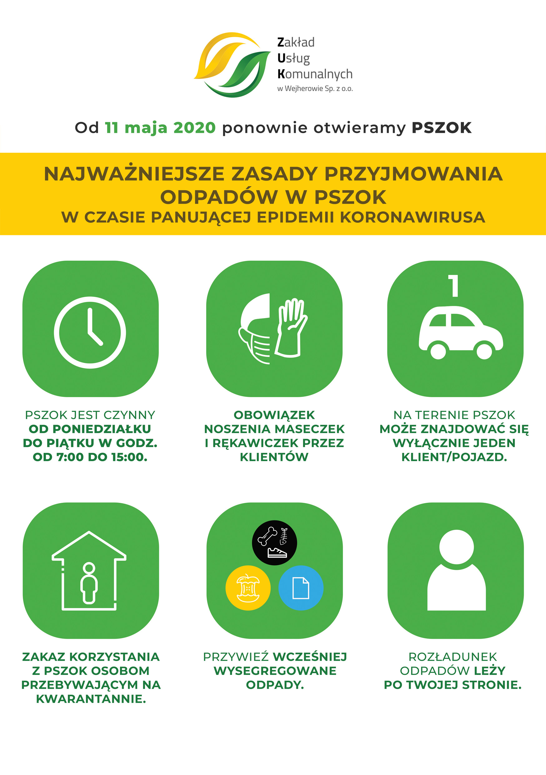 Więcej informacji można znaleźć na stronie internetowej zukwejherowo.pl w zakładce Punkt Selektywnej Zbiórki Odpadów Komunalnych, gdzie dostępny jest aktualny Regulamin funkcjonowania PSZOK.