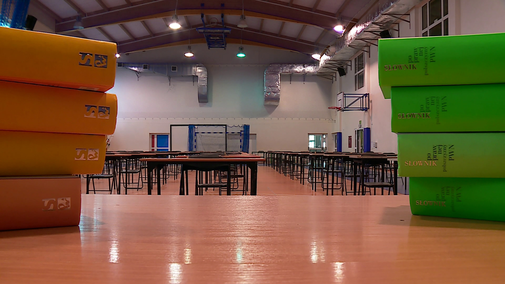 – Uczeń wchodzi wejściem wyznaczonym tylko i wyłącznie dla danej grupy, na wybrane piętro albo do sali gimnastycznej. Później będzie już pod opieką komisji egzaminacyjnej. Ten schemat będzie się powtarzał codziennie, na innych egzaminach – wyjaśnia Wojciech Rogocki, dyrektor PZS nr 3 w Wejherowie.