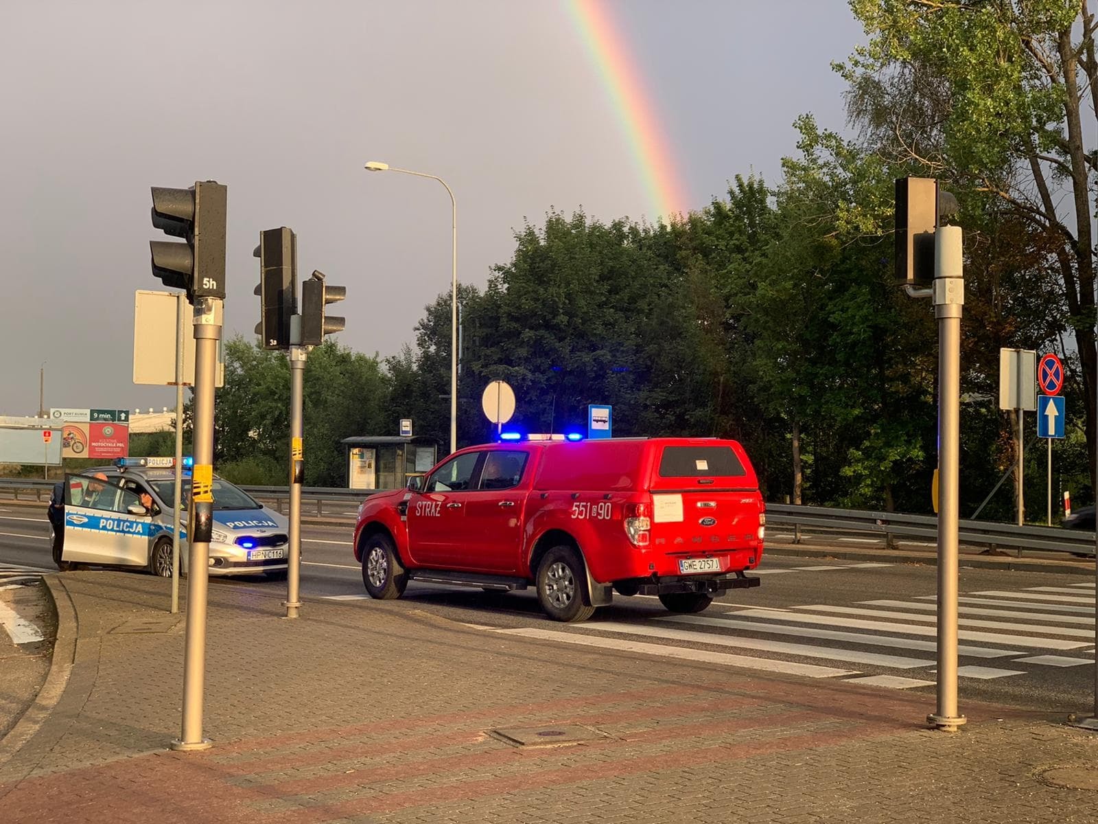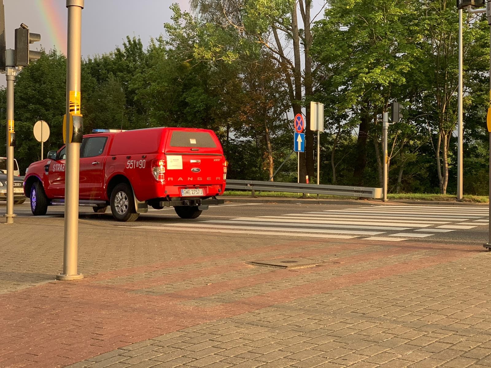 W akcji wzięły udział dwa zastępy straży pożarnej, załoga karetki pogotowia oraz policjanci. Na czas pracy służby pas w kierunku Lęborka był zablokowany.