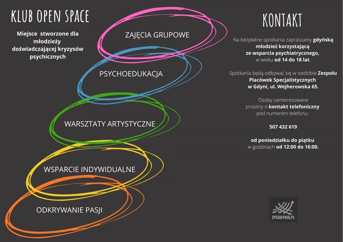 Jest to nowa forma wsparcia dla gdyńskiej młodzieży. Do klubu zapisać mogą się osoby, które na co dzień korzystają z pomocy lekarza psychiatry. Odbywać będą się zajęcia tematyczne – artystyczne, teatralne. Nie zabraknie także indywidualnych spotkań, które pomogą w ćwiczeniu kompetencji miękkich i umiejętności społecznych.
