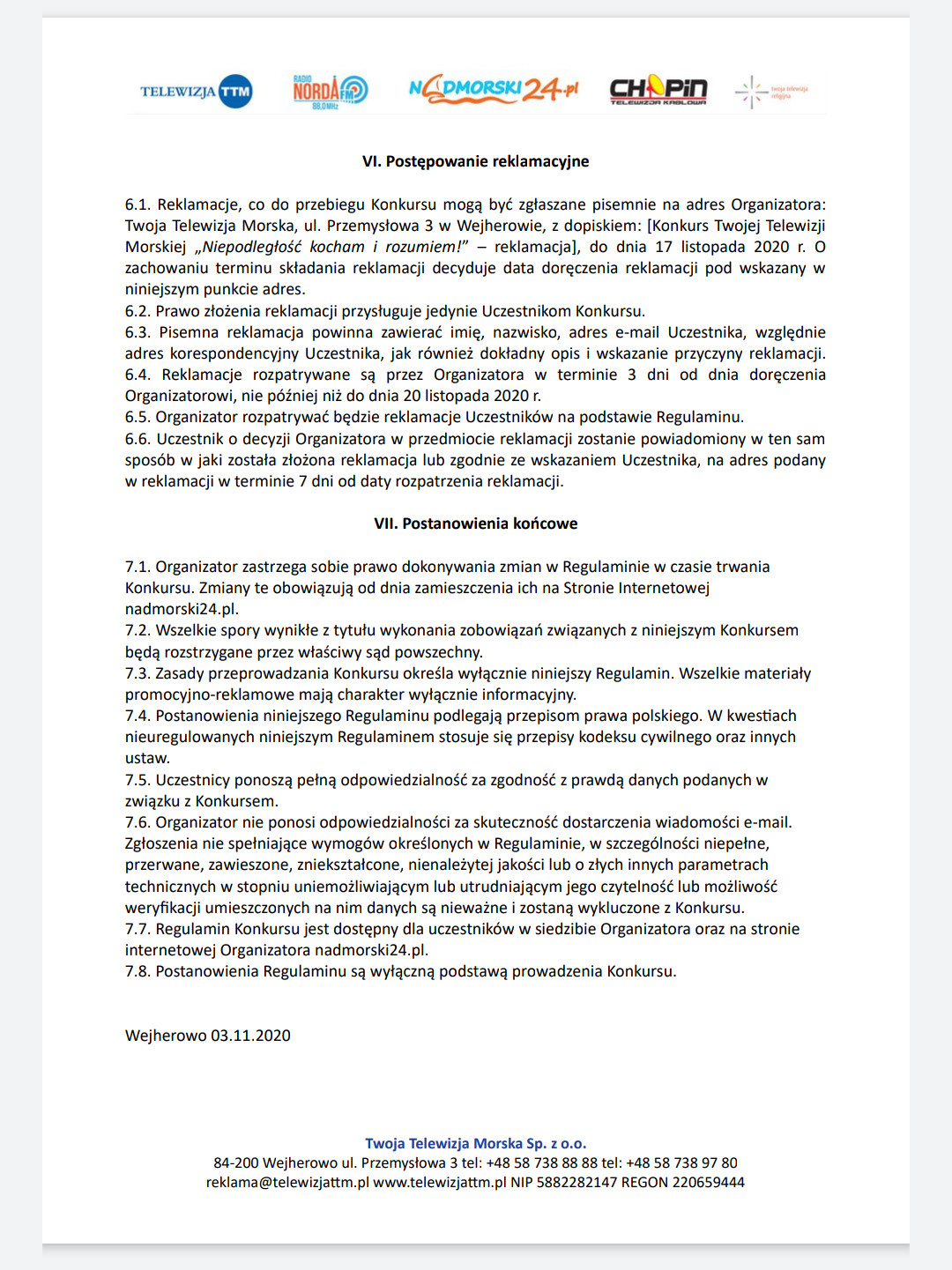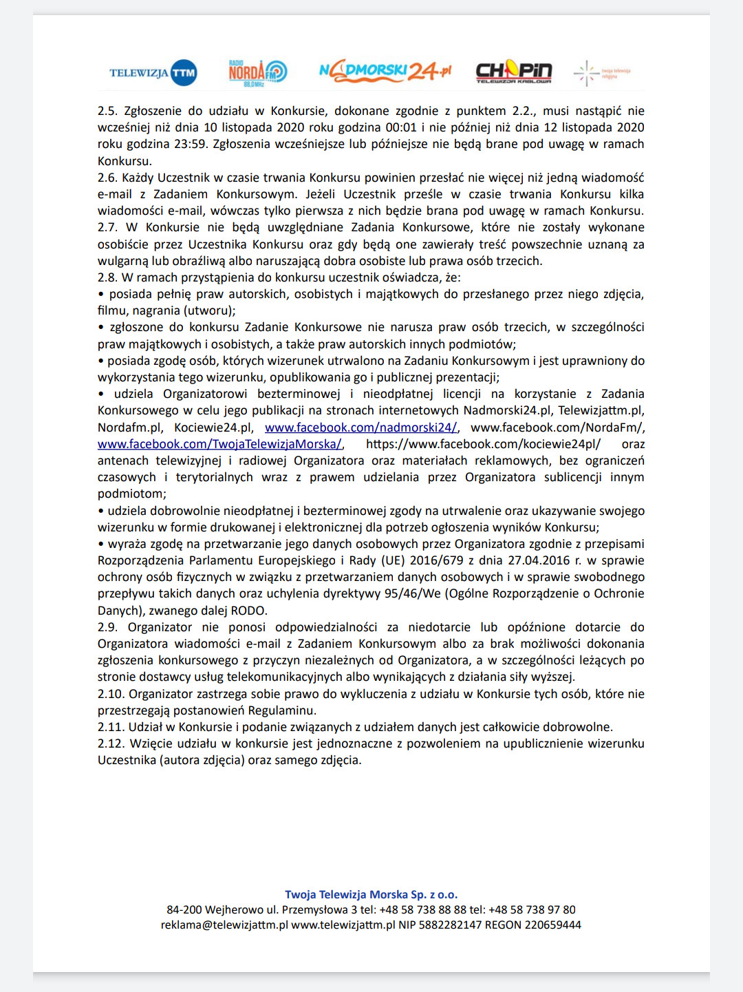 Regulamin konkursowy