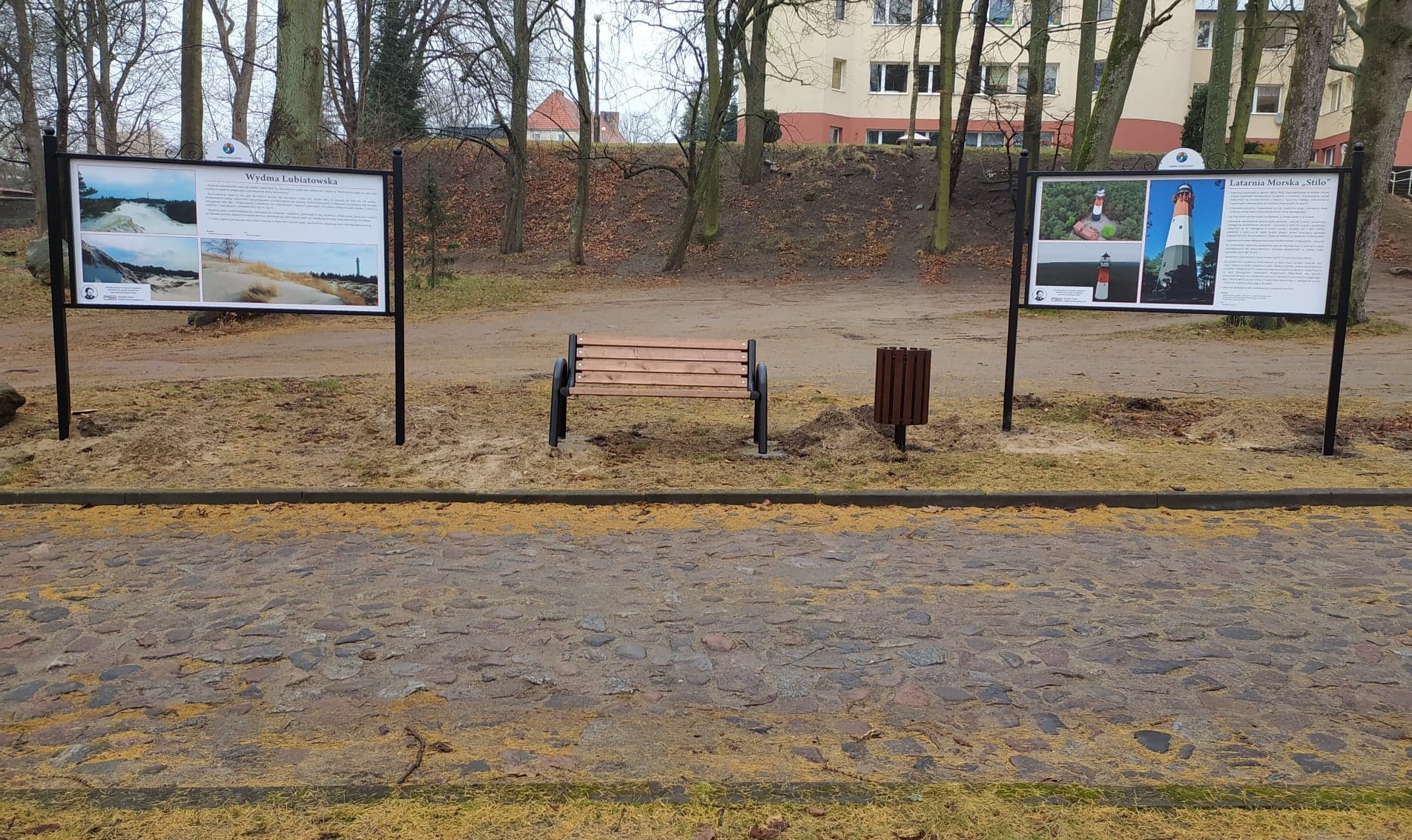 Nowa przestrzeń dla mieszkańców i turystów odwiedzających park powstała dzięki grantowi, który Gminny Ośrodek Kultury i Biblioteki im. Stefana Żeromskiego otrzymał w ramach programu „WzMOCnij swoje otoczenie”. Celem programu realizowanego przez PSE jest wyłonienie projektów związanych z rozwojem lokalnej infrastruktury, zwiększeniem bezpieczeństwa mieszkańców w warunkach pandemii koronawirusa oraz pomoc w dostosowaniu sposobu działania i narzędzi pracy do obowiązujących obostrzeń sanitarnych w gminach, na terenie których jest zlokalizowana lub budowana infrastruktura przesyłowa.