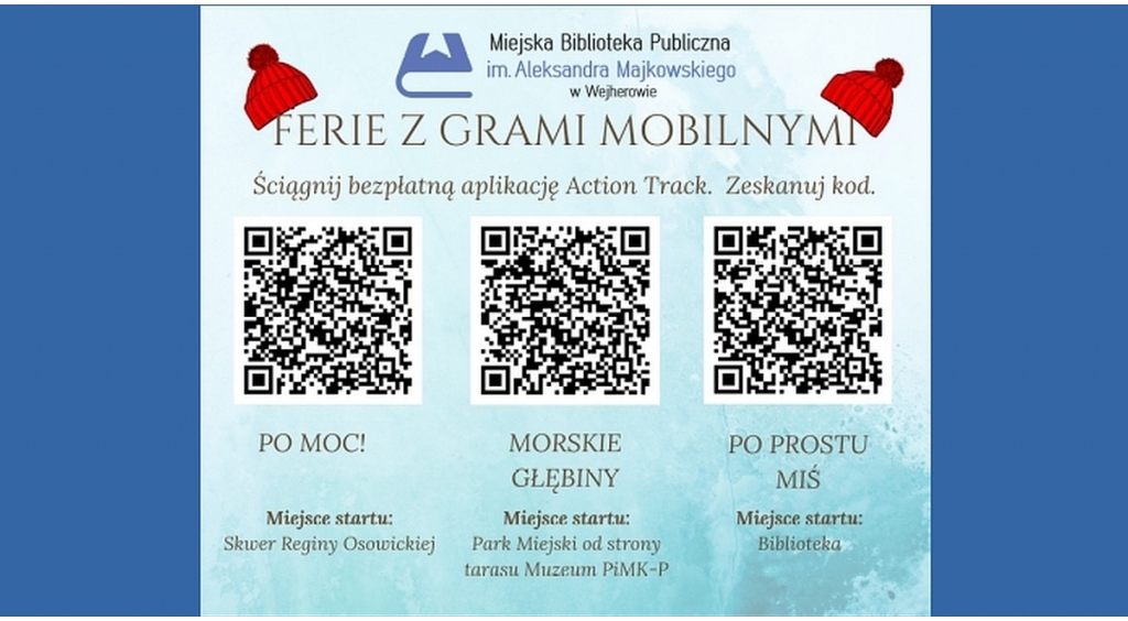 Tegoroczne ferie są inne niż zazwyczaj. Z powodu nowych obostrzeń związanych z koronawirusem, zimowa przerwa w nauce nie może odbyć się w tradycyjnej formie. Miejska Biblioteka w Wejherowie zaprasza więc do wzięcia udziału w grach mobilnych na świeżym powietrzu.