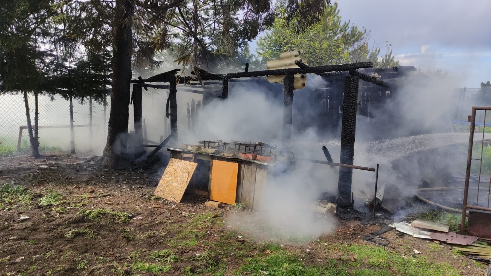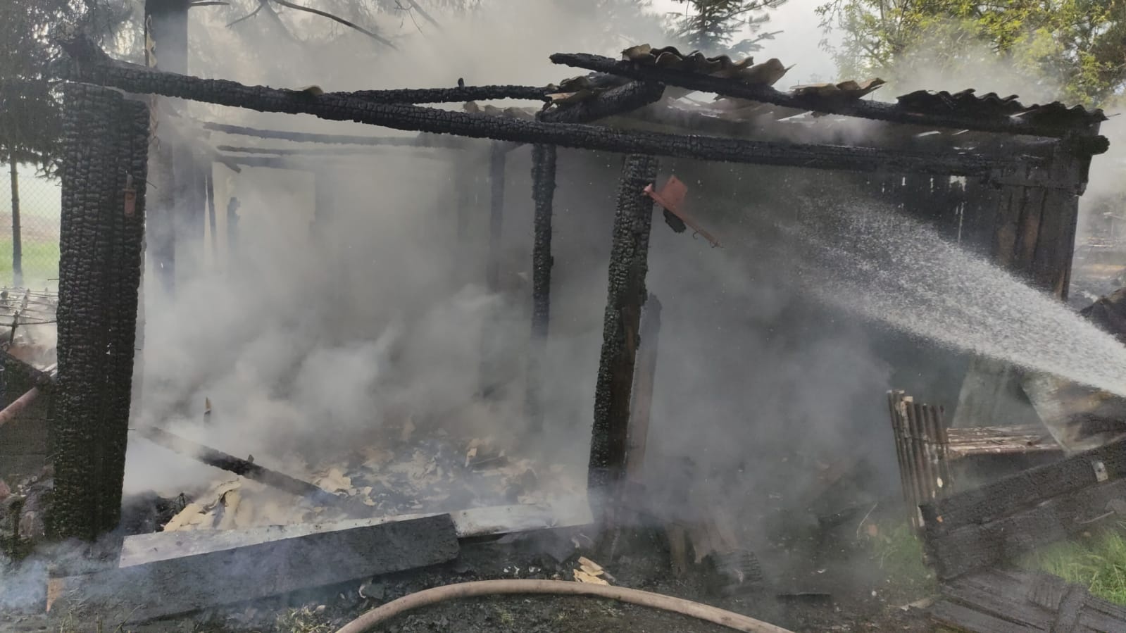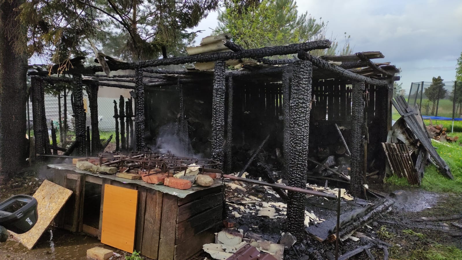 W Połchówku piorun uderzył w składzik na drewno. Drewniana konstrukcja doszczętnie spłonęła.