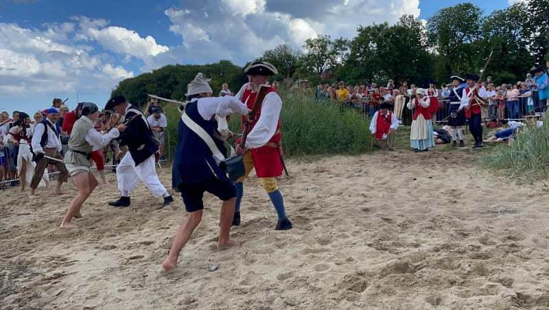 O godzinie 15.00 rozpoczął się najazd Kaprów na zieloną plażę, rekonstrukcja z udziałem grupy ze stowarzyszenia Garnizon Gdańsk i pomeranki „Pucczanki”. Nie zabrakło występów muzycznych. Na scenie pojawił się zespół Atlantyda i The Nierobbers.