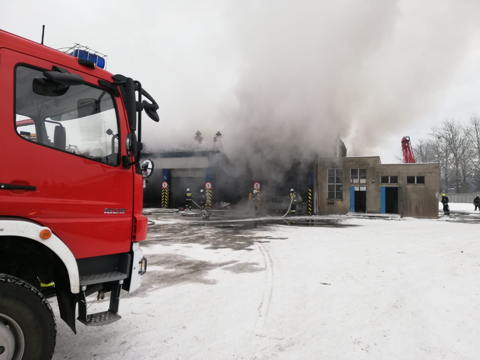 Pożar w hali garażowej MZK Wejherowo gasiło 48 strażaków