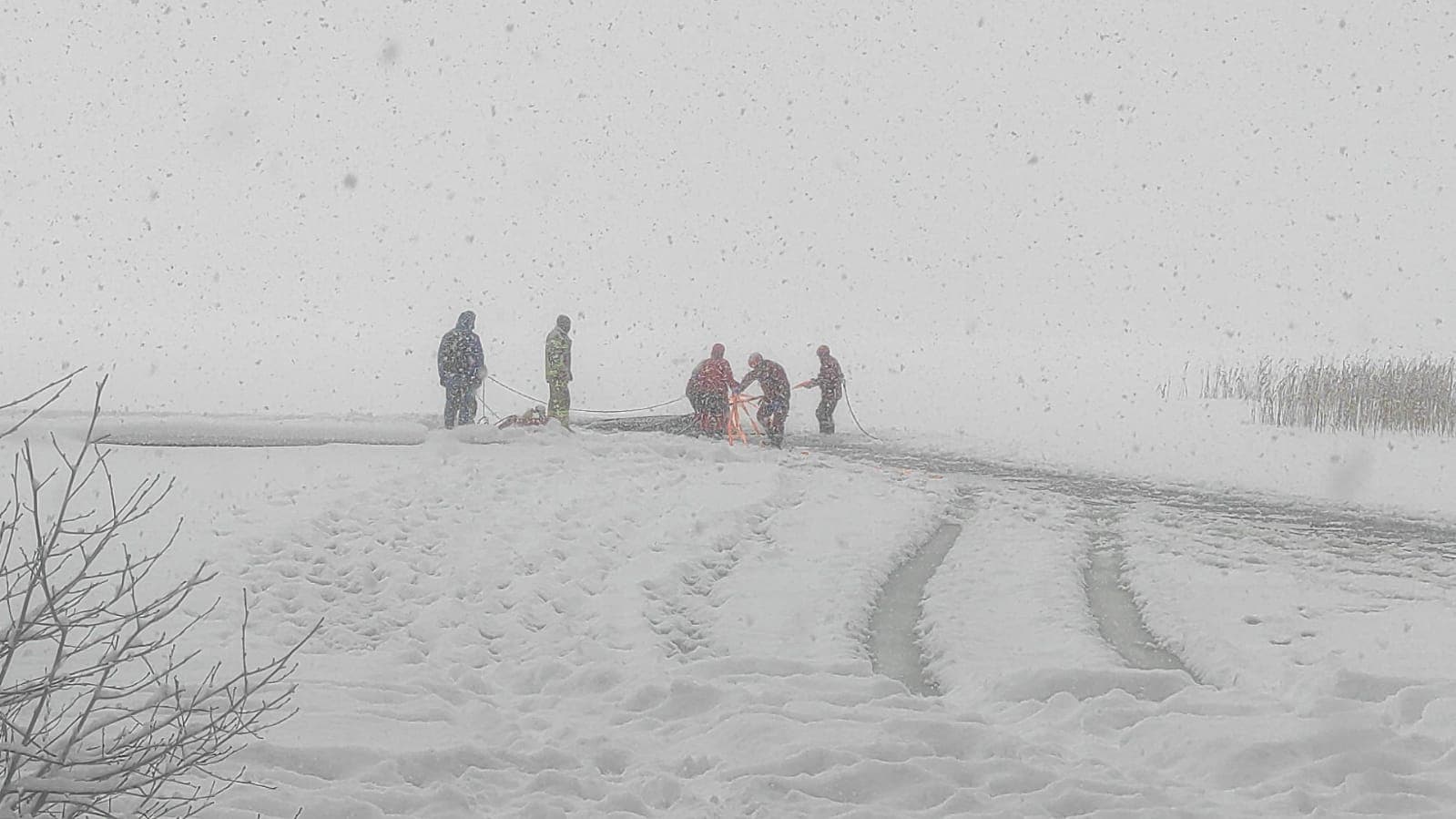 Jeździł po zamarzniętej tafli jeziora – lód załamał się pod autem