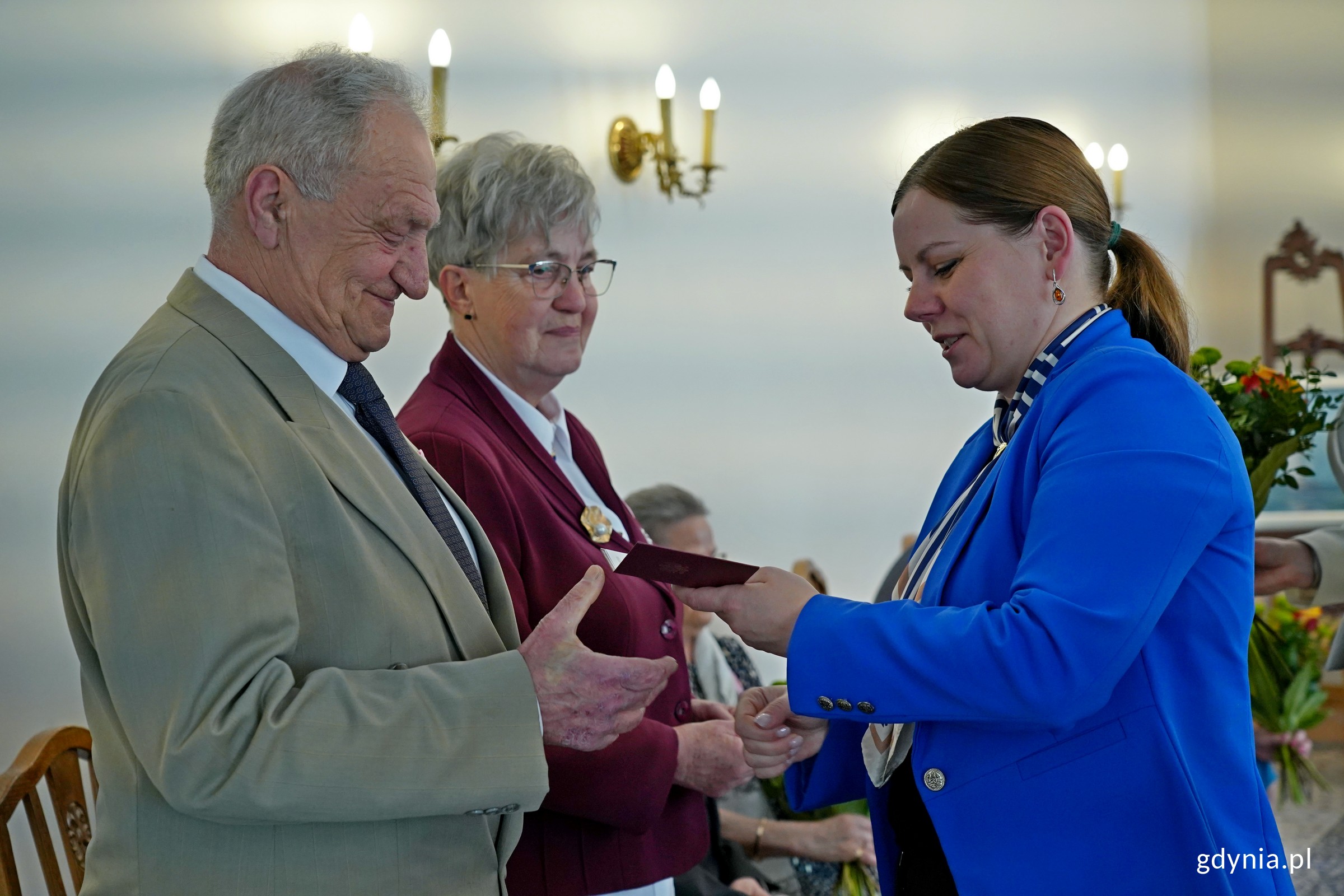 Medal za Długoletnie Pożycie Małżeńskie wręczyła prezydent Gdyni, Aleksandra Kosiorek.
