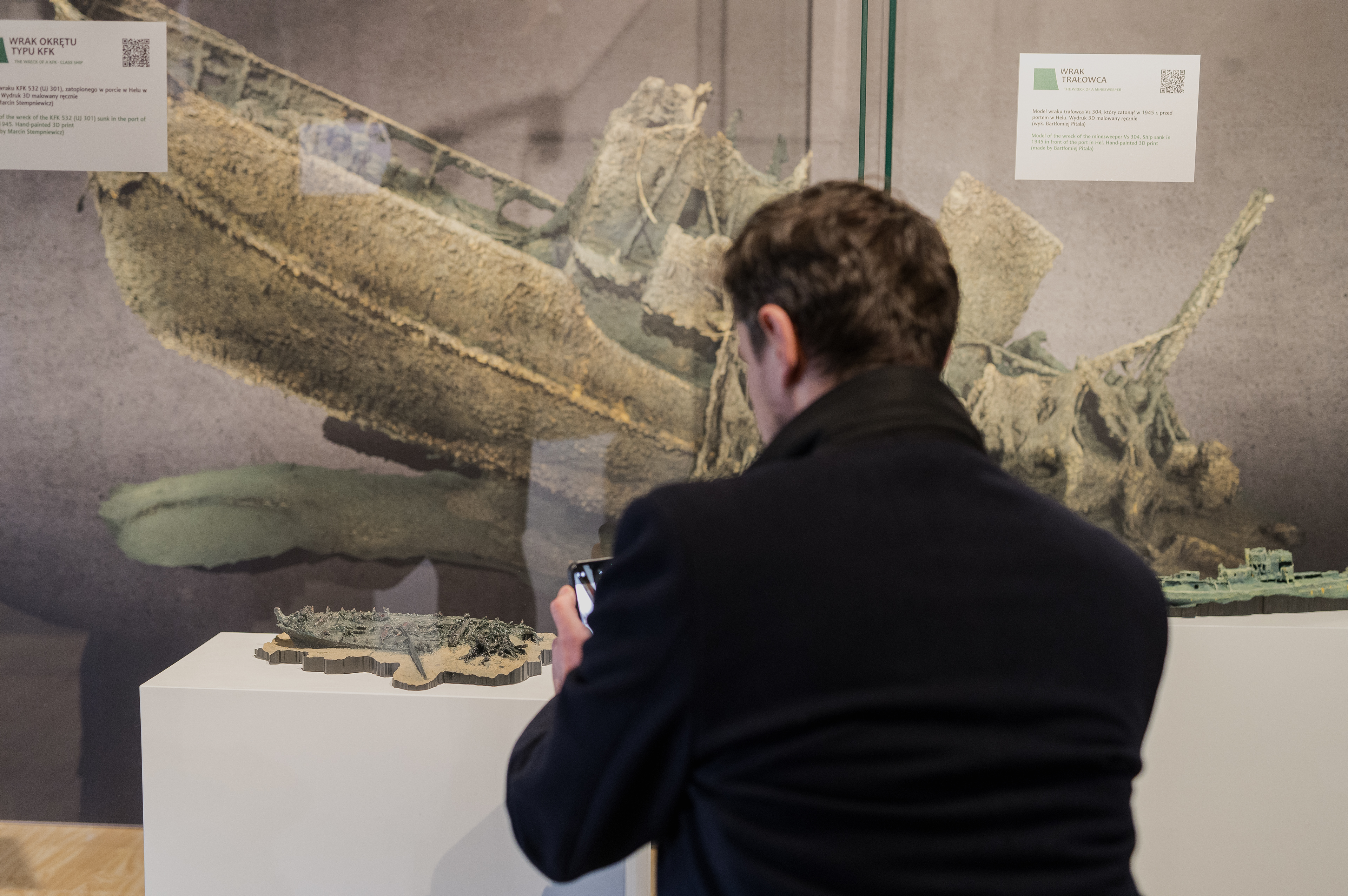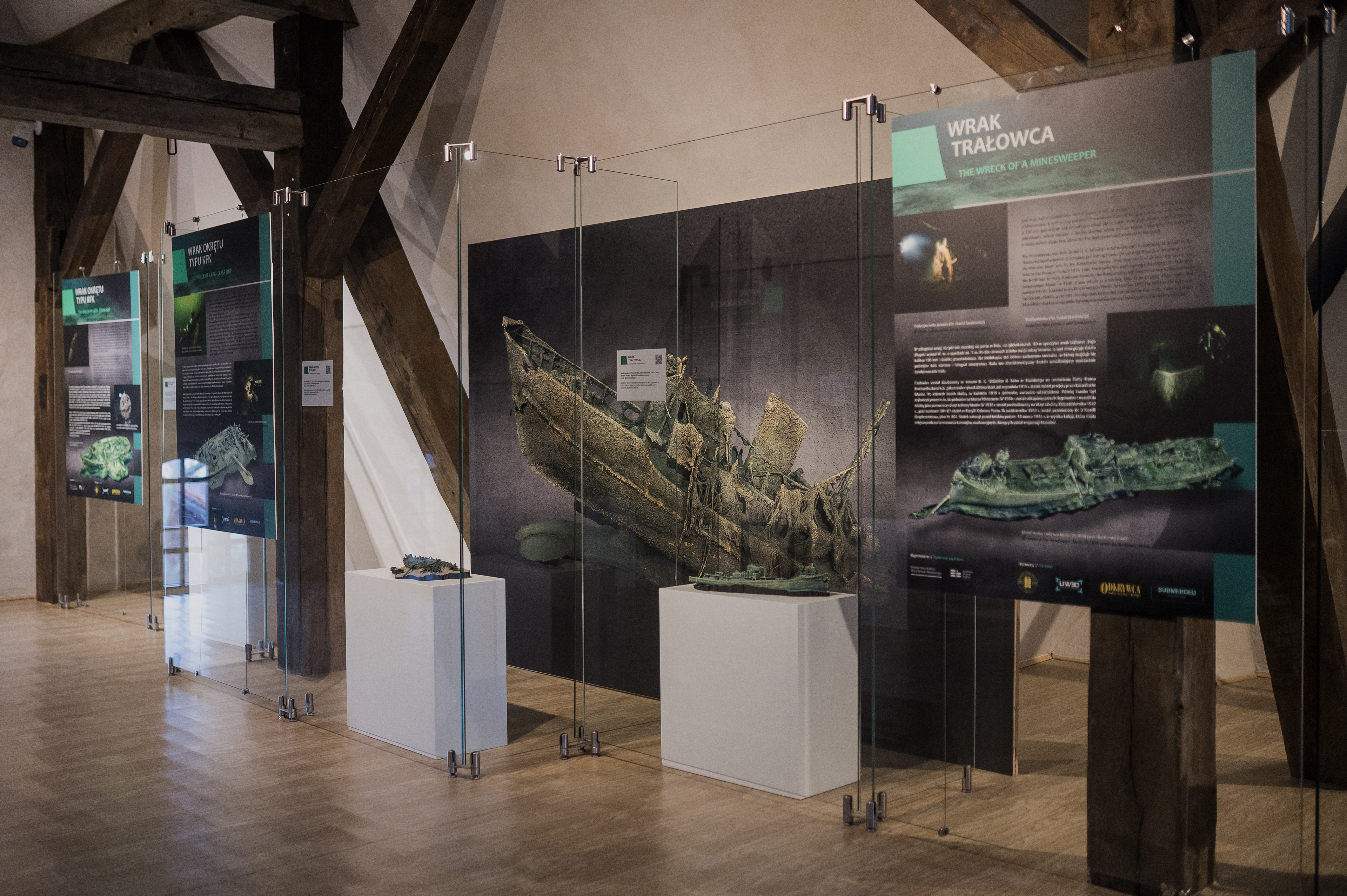 Cyfrowe modele fotogrametryczne wybranych wraków spoczywających na dnie Zatoki Gdańskiej zostały na wystawie pokazane zarówno w postaci dwuwymiarowych obrazów, jak i animacji 3D oraz fizycznych form przestrzennych.