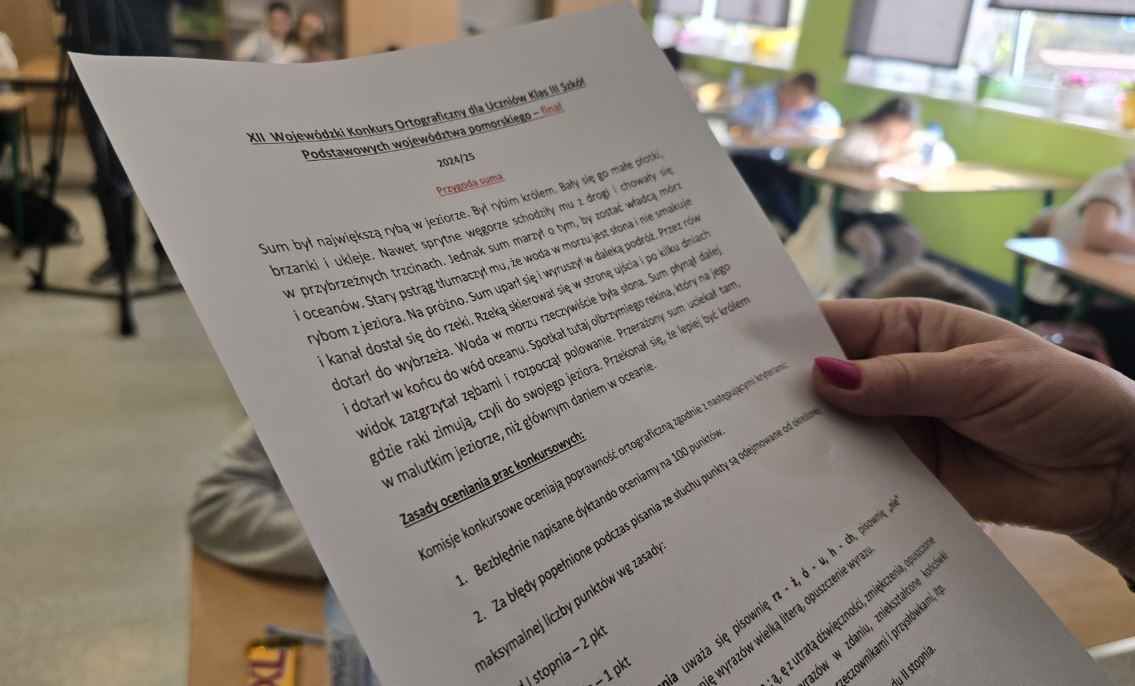 — Konkurs ma trzy etapy. Rozpoczynamy w listopadzie, kiedy to wysyłamy zaproszenia do szkół, w których przeprowadzane są pierwsze etapy konkursu. Uczniowie, którzy otrzymali minimum 95% punktów przechodzą do kolejnego etapu. Dziś mierzą się z dyktandami dostosowanymi do swojego poziomu — mówiła dla Twojej Telewizji Morskiej Barbara Bagińska, nauczyciel w Szkole Podstawowej w Gościcinie