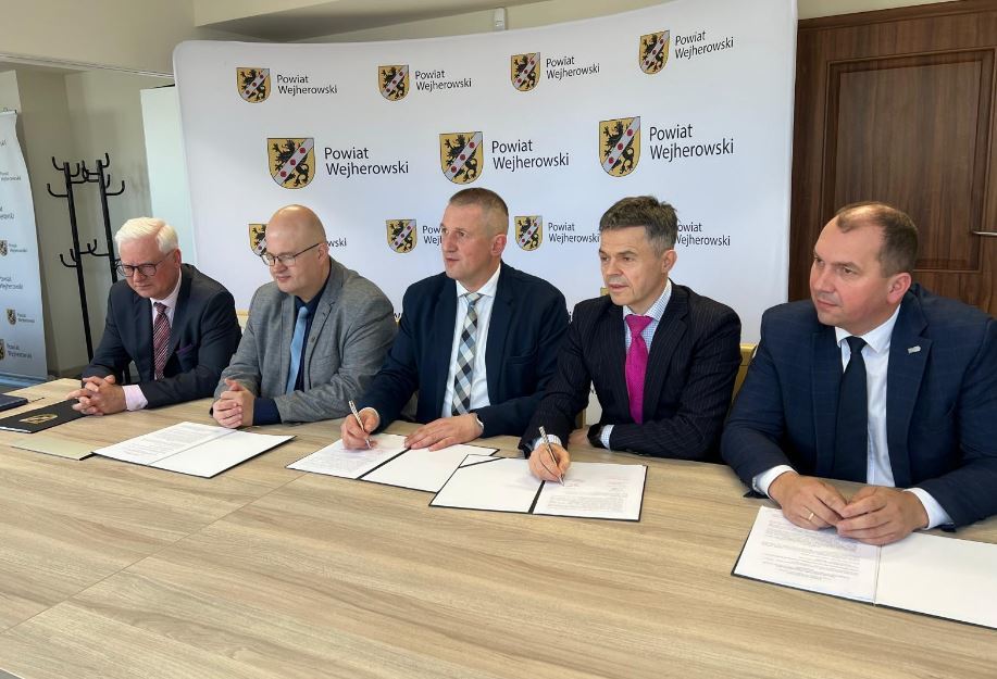 W piątek, 25 kwietnia w starostwie powiatowym w Wejherowie odbyło się podpisanie umów na realizację zadań drogowych w gminie Linia i w Gminie Szemud.