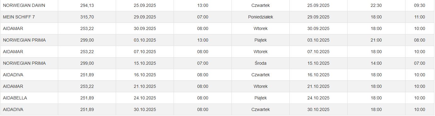 Statki wycieczkowe spodziewane w Porcie Gdynia w 2025 roku