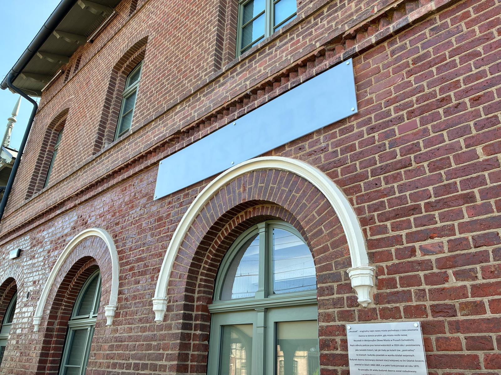 — Miejski Konserwator Zabytków w Wejherowie nie dopuścił możliwości trwałego usunięcia napisu „Neustadt”, natomiast dopuścił możliwość przysłonięcia go mleczną szybą, co zostało wykonane. Dodatkowo, w uzgodnieniu z konserwatorem, pod napisem umieszczona została tablica informująca o historii powstania dworca – informuje Agnieszka Jurewicz z PKP S.A.