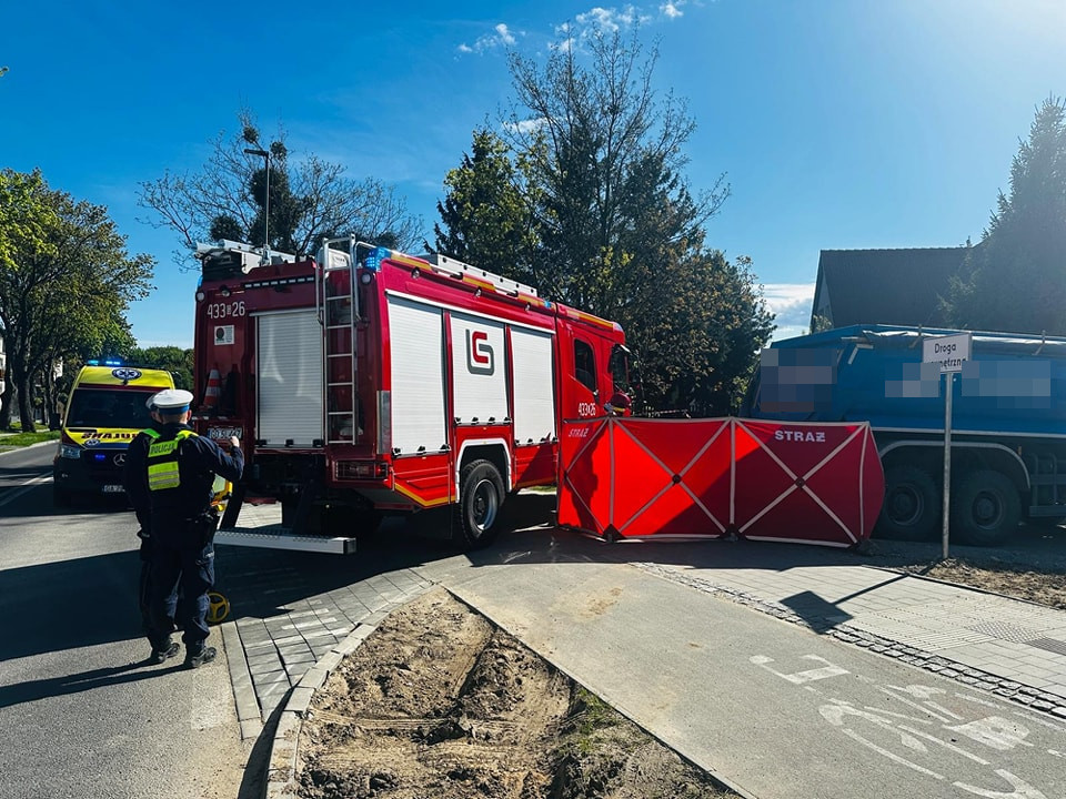 Nastolatek jadący na rowerze został potrącony przez samochód ciężarowy jadący z pobliskiej budowy. Na razie policja poinformowała, że 59-letni kierowca ciężarówki był trzeźwy.