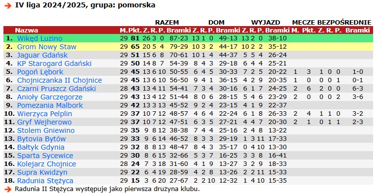 Powodów do radości po 29. kolejce nie mieli za to zawodnicy Stolemu Gniewino i Gryfa Wejherowo. Gole Pawła Sobczyńskiego i Oskara Śliwowskiego to było za mało, aby Stolem mógł cieszyć się chociażby z punktu. Gniewinianie w Arenie Mistrzów przegrali z Chojniczanką II Chojnice 2:4.