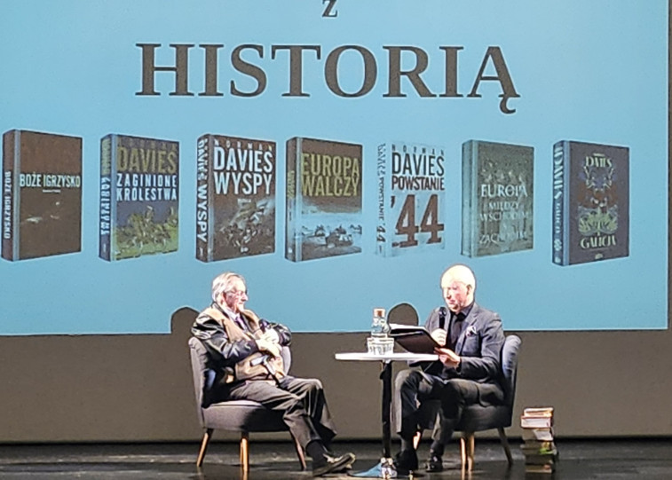 Podczas rozmowy Norman Davies opowiadał o kulisach powstawania swoich publikacji oraz o tym, jak zbierał materiały do książek w różnych zakątkach świata. Zwracał uwagę na znaczenie perspektywy lokalnej i regionalnej w analizie dziejów, nie pomijając roli historii Polski jako ważnego elementu większej układanki europejskiej.