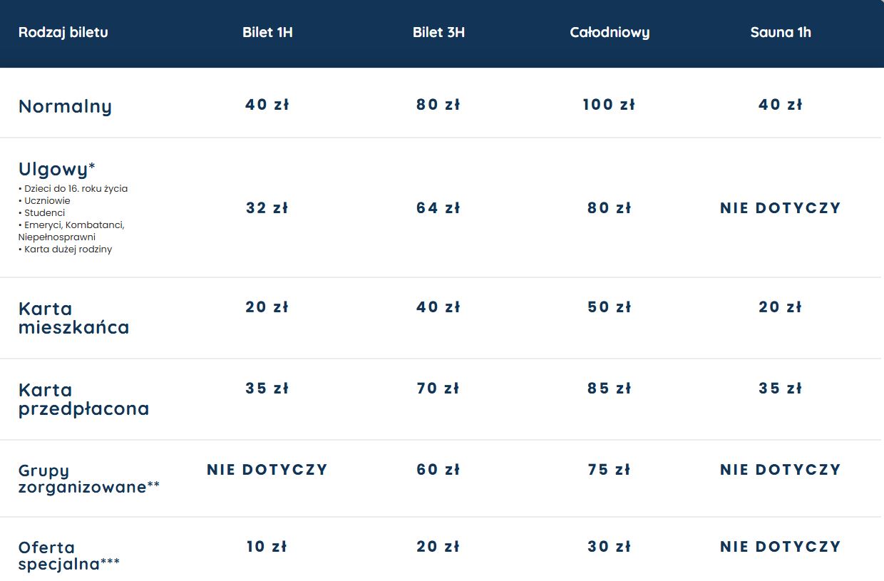 Tego dnia godzinne wejście kosztować będzie 10 zł, trzy godziny 20 zł, natomiast wejście na cały dzień to koszt 30 zł. Takie ceny obowiązywać będą wszystkich, bez względu na wiek. Dokładnie ta promocja obowiązywać będzie przez cały czerwiec wszystkich uczniów ( za okazaniem legitymacji uczniowskiej), nie tylko z terenu Wejherowa. Skorzystają z niej również seniorzy posiadający Wejherowską Kartę Mieszkańca z pakietem seniora.