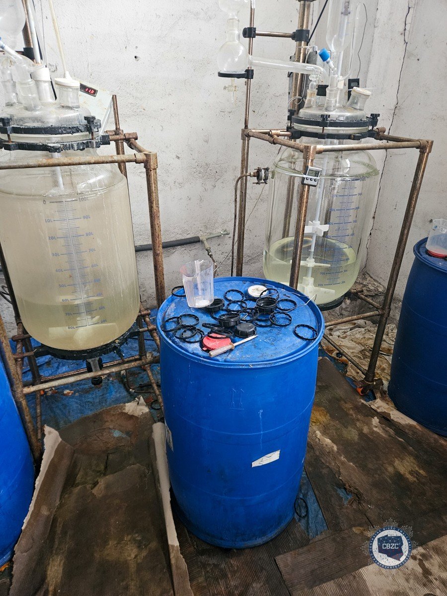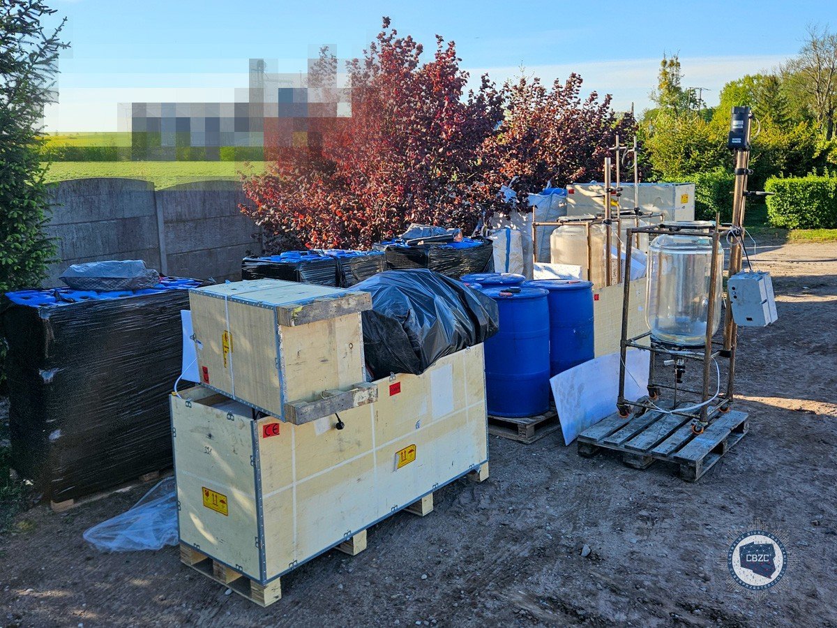 Funkcjonariusze wykryli laboratorium oraz aparaturę stanowiącą linię produkcyjną przeznaczoną do produkcji. W kontenerach morskich znaleźli odczynniki i środki chemiczne ok. 5 ton będące prekursorami do produkcji niebezpiecznych substancji. U jednego z zatrzymanych ujawniono również nielegalnie posiadaną broń palną.