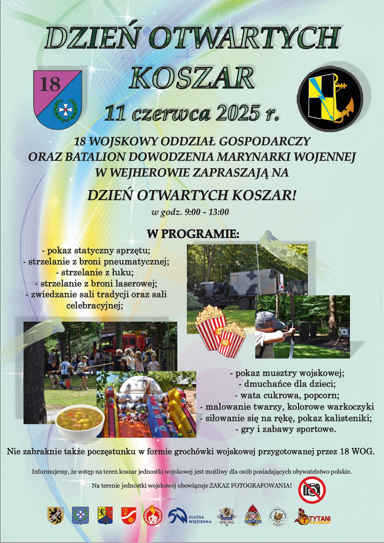 Wejherowo znów stanie się centrum wojskowych atrakcji! W środę, 11 czerwca odbędzie się Dzień Otwartych Koszar, organizowany przez 18 Wojskowy Oddział Gospodarczy oraz Batalion Dowodzenia Marynarki Wojennej.