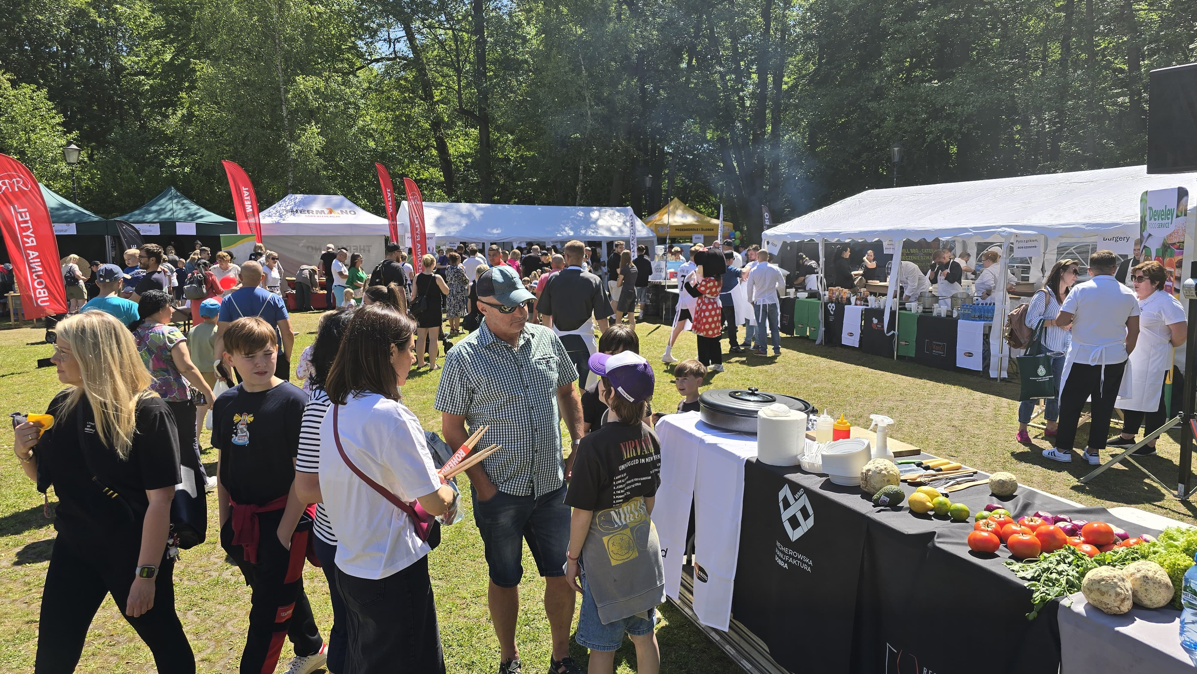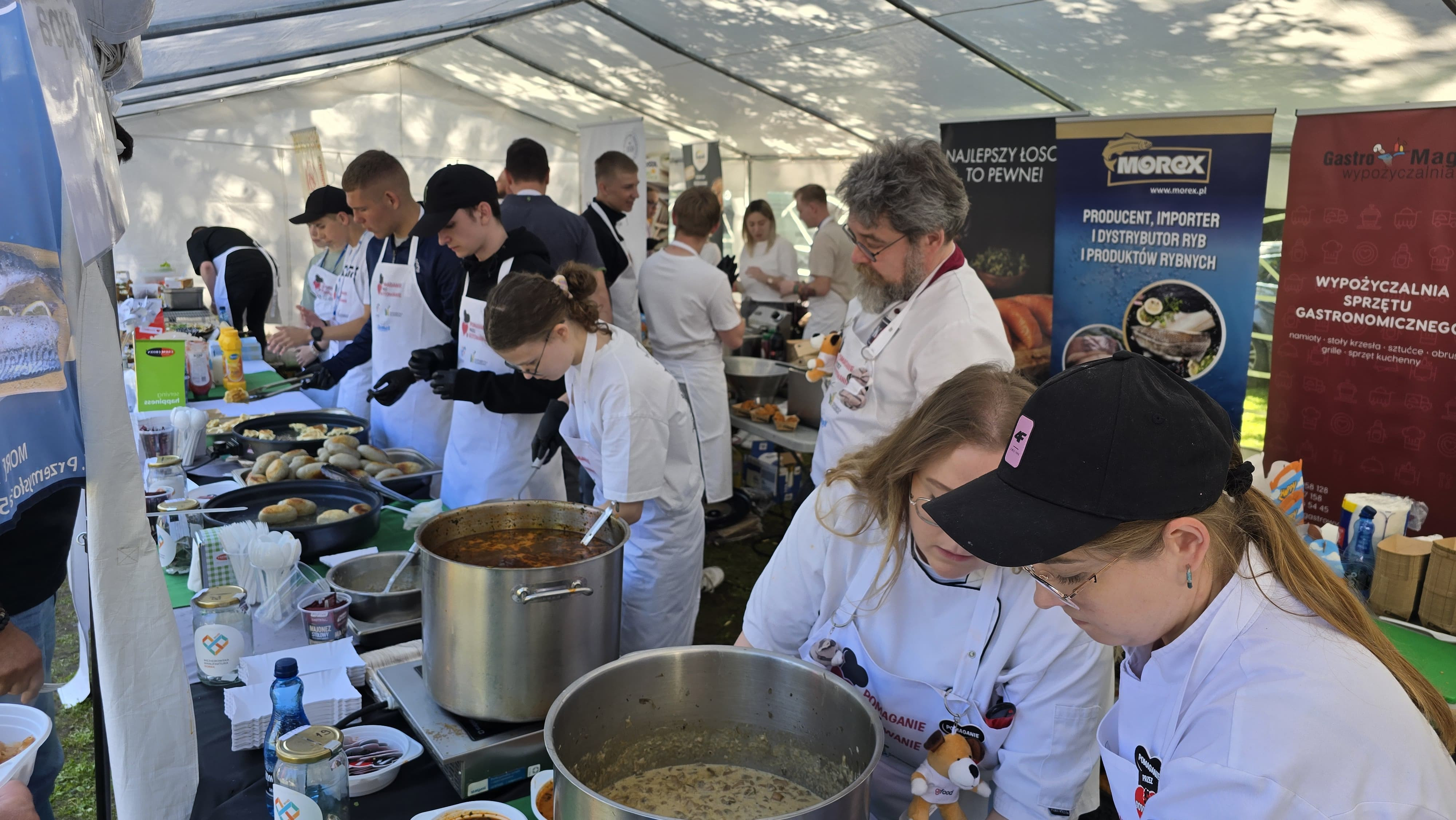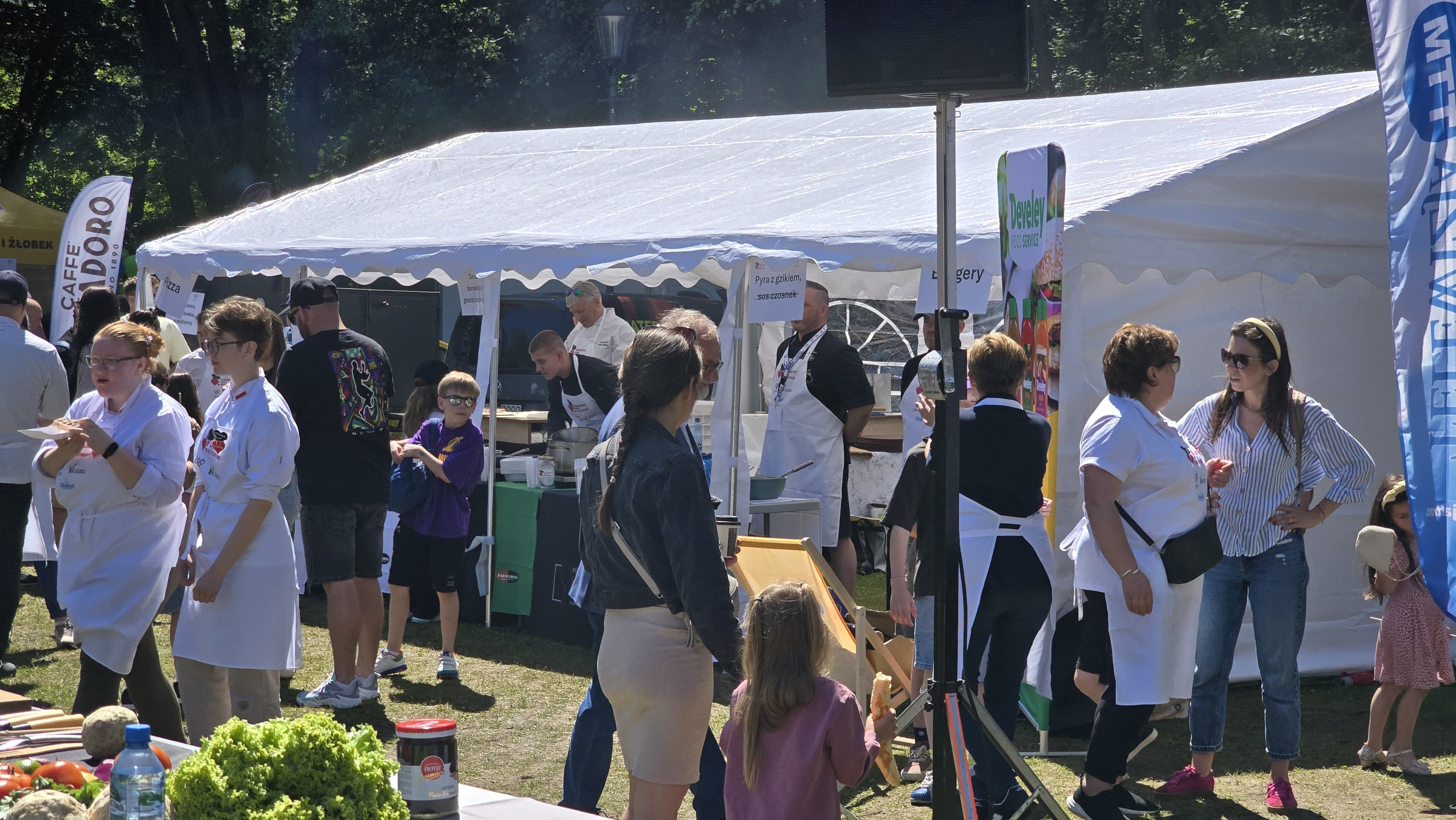— Wielkie święto, spotykamy się w parku, żeby pomagać dzięki zaangażowaniu wielu osób między innymi Ekofabryki, nowej fundacji - Wejherowskiej Manufaktury Dobra, ale też dzięki panu Sebastianowi Cichy, który był pomysłodawcą wydarzenia "Pomaganie przez Gotowanie". Dzisiaj kucharze z całej Polski, znane postacie gotują dla mieszkańców Wejherowa i wszystkich, którzy tu przyjechali - wyjaśnia Arkadiusz Kraszkiewicz, zastępca prezydenta Wejherowa.