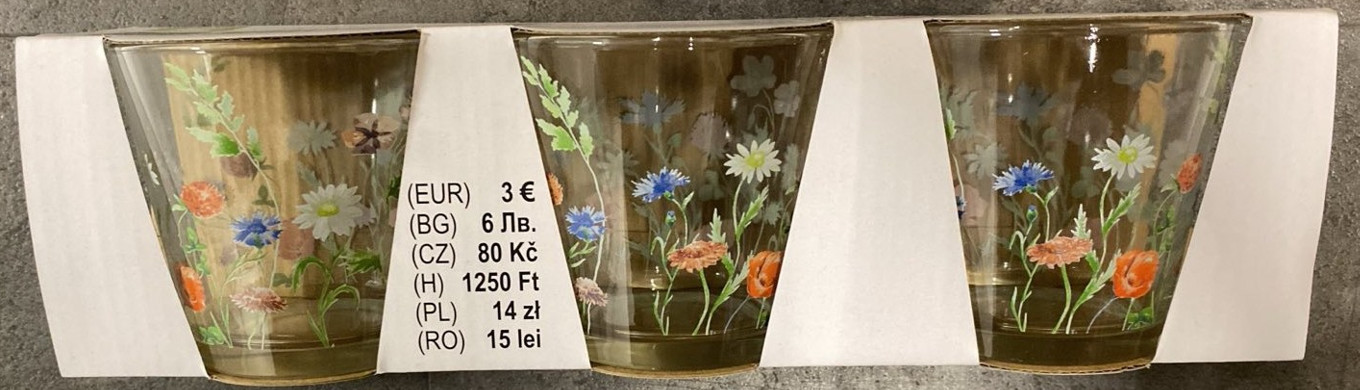 Produkt: Szklanka ze wzorem kwiatowym 250 ml (komplet 3 sztuk)