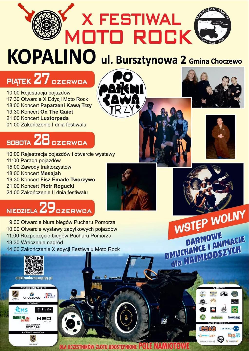 Kopalino w gminie Choczewo stanie się sercem motoryzacyjnych i rockowych emocji. Na ul. Bursztynowej 2 odbędzie się jubileuszowa, dziesiąta edycja Festiwalu Moto Rock, który po raz kolejny przyciągnie fanów mocnego brzmienia, traktorów i dobrej zabawy.