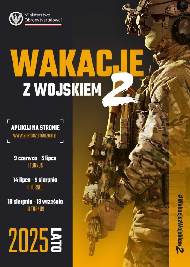 Wojsko Polskie zaprasza ochotników do spędzenia części swoich wakacji na dobrowolnym i ochotniczym szkoleniu wojskowym pod hasłem „Wakacje z wojskiem 2”. To już druga edycja tego, sprofilowanego na młodych, szkolenia wojskowego.