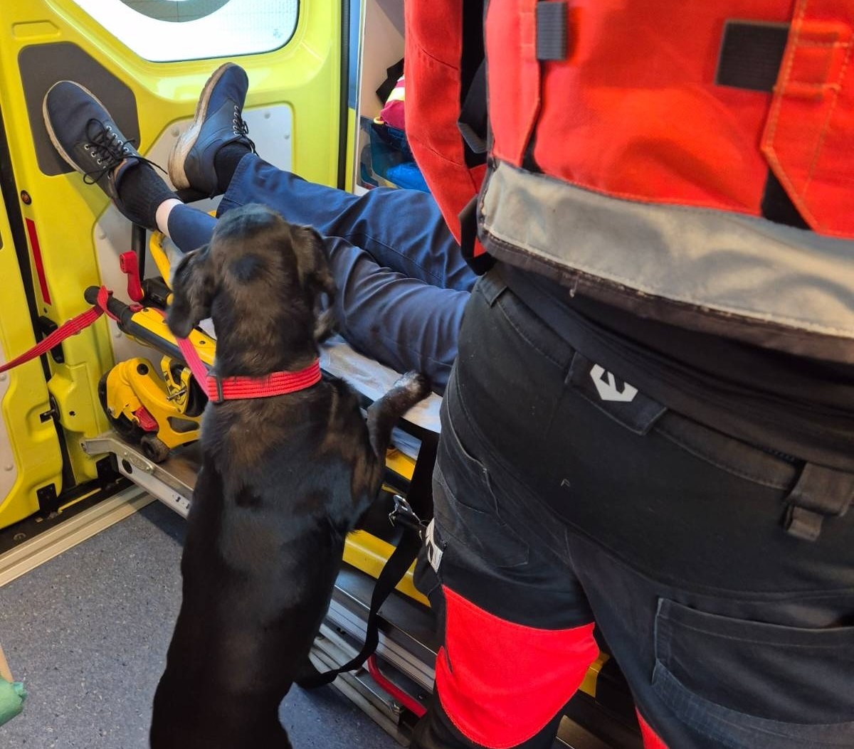 Choć zwierzę nie było psem asystującym, ratownicy nie pozostali obojętni i objęli opieką również czworonoga.