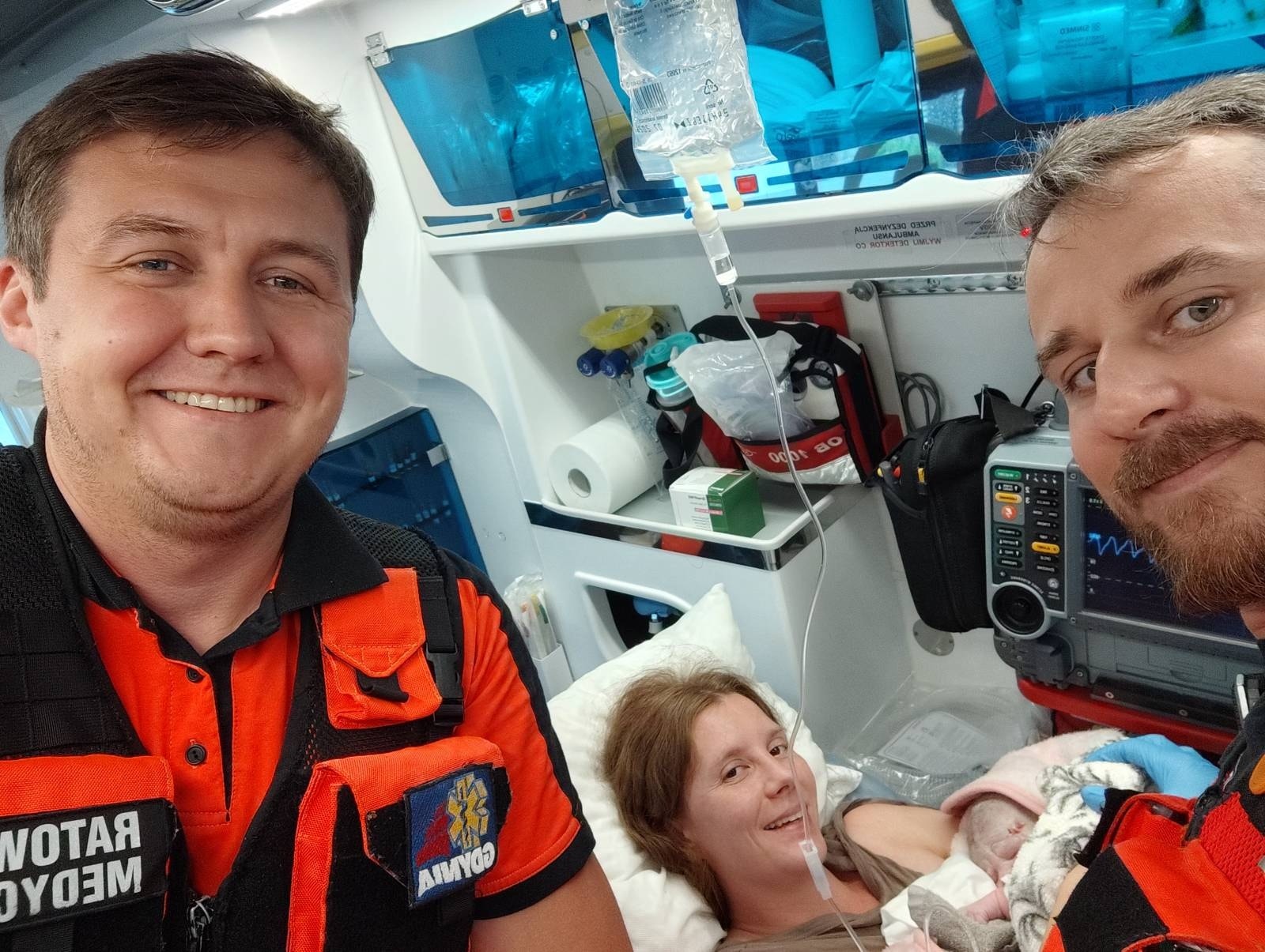 Po porodzie mama i córka zostały bezpiecznie przewiezione do szpitala. Gratulujemy rodzicom oraz zespołowi ratowniczemu!