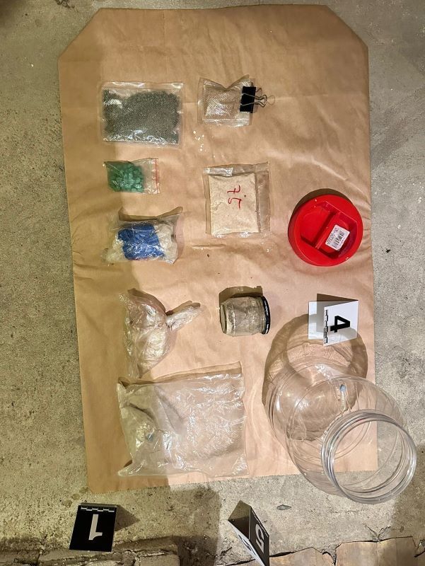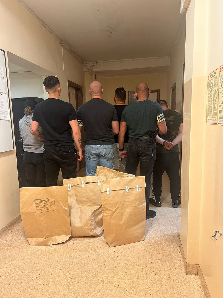 Przy udziale technika kryminalistyki policjanci zabezpieczyli worki foliowe, słoiki, pojemniki i reklamówkę z białą, brązową i różową, zbrylowaną substancją, a także tabletki. Łącznie kryminalni zabezpieczyli 11 773 pojedynczych porcji środków odurzających. Kobieta oraz mężczyźni zostali przewiezieni do jednostki Policji, gdzie przeprowadzono z nimi niezbędne czynności, następnie zostali osadzeni w policyjnej celi.