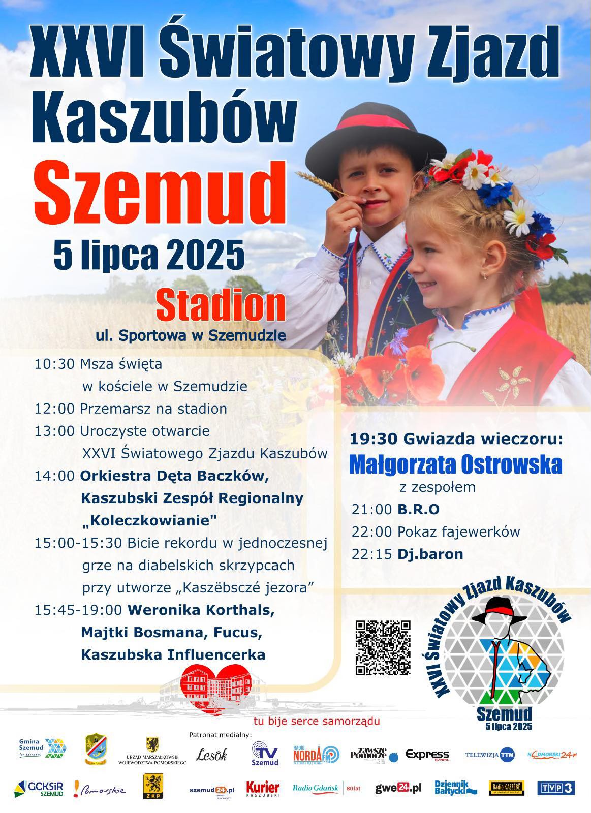 Wielkie święto kaszubskiej kultury, tradycji i muzyki powraca! Już w sobotę, 5 lipca 2025 roku, na stadionie przy ul. Sportowej w Szemudzie odbędzie się XXVI Światowy Zjazd Kaszubów – coroczne wydarzenie, które łączy pokolenia i przyciąga uczestników z całego świata.
