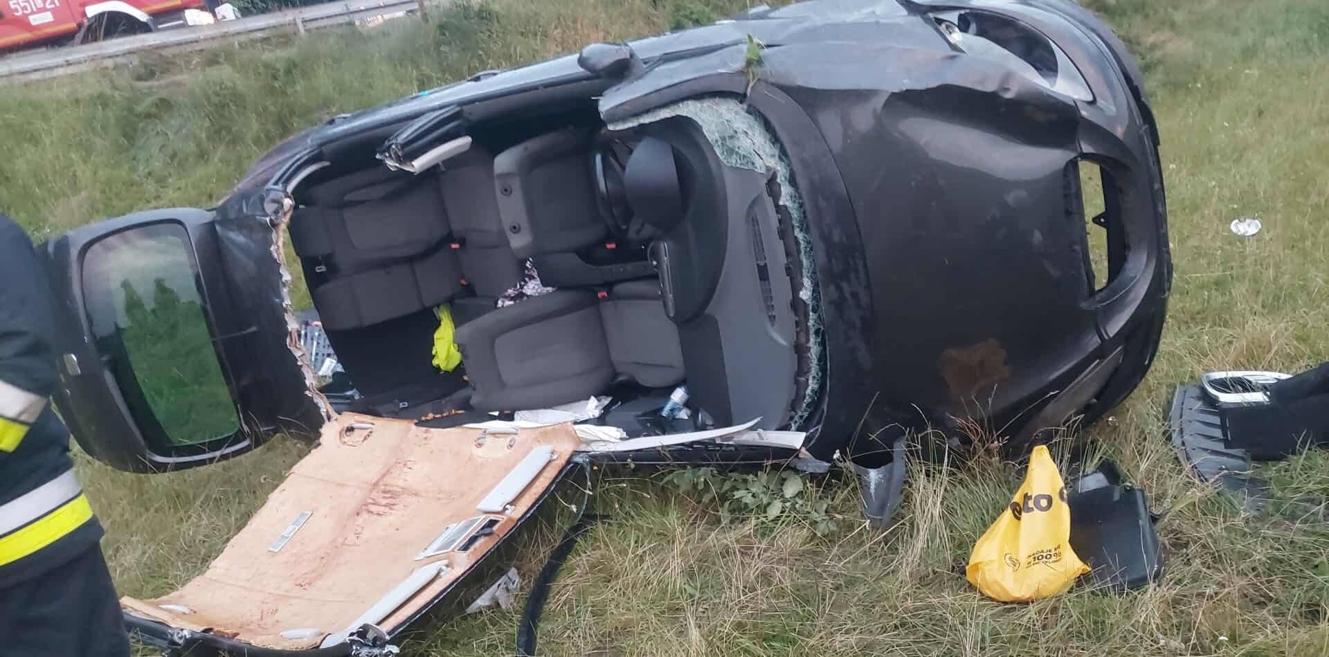 Na drodze dachował samochód osobowy. Cztery osoby, w tym dzieci, zostały poszkodowane i przetransportowano je do szpitala.