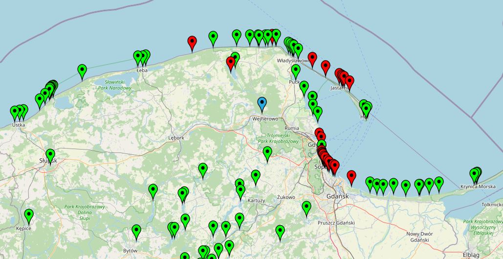 Na wszystkich plażach od Sopot Kamienny Potok-Koliba do Dom Zdrojowy Gdańsk Brzeźno
