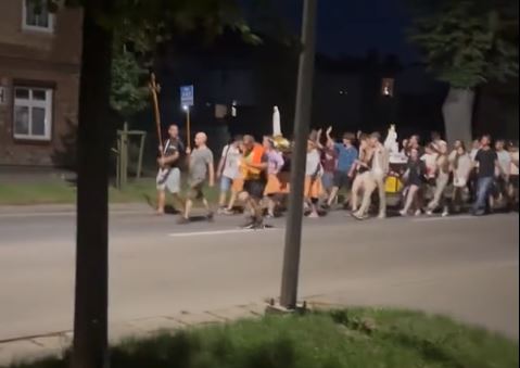 W sieci zawrzało po publikacji krótkiego nagrania z Wejherowa, na którym widać pielgrzymów maszerujących przez miasto późnym wieczorem. Gdyby nie pora, pewnie nikt nie zwróciłby na to większej uwagi – w końcu latem pielgrzymki to częsty widok. Jednak tym razem pielgrzymka przechodziła ulicami około godziny 22:40, przy akompaniamencie orkiestry dętej.