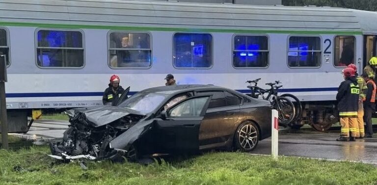 Samochód osobowy marki BMW, jadąc przez niestrzeżony przejazd kolejowy, wjechał wprost pod nadjeżdżający pociąg pasażerski TLK relacji Lębork–Łeba.