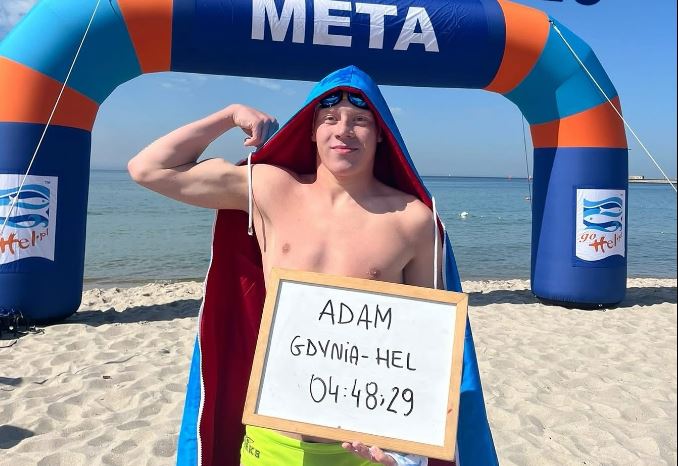Adam wystartował pod honorowym patronatem prezydent Gdyni i burmistrza Helu. Na starcie dopingowali go bliscy i znajomi, którzy po kilku godzinach mogli zobaczyć, jak triumfalnie wychodzi na plażę na samym końcu Półwyspu Helskiego.