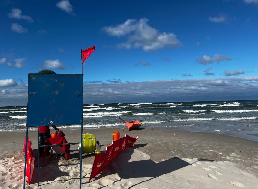 Nad wieloma pomorskimi kąpieliskami nadal powiewają czerwone flagi. Powodem są wysokie fale i prądy wsteczne.