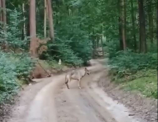 Nasza czytelniczka wysłała do nas filmik, na którym widać stojącego na leśnej ścieżce wilka. Nagrywająca stoi od niego o kilka kroków. Przez kilkanaście sekund nagrywa zwierzę, które przygląda się kobiecie, następnie spokojnie odchodzi w głąb lasu. I choć nagrania z wilkami widzieliśmy już wielokrotnie, nigdy dotąd wilk nagrany nie był z tak bliskiej odległości. Pod filmikiem wylała się fala komentarzy: