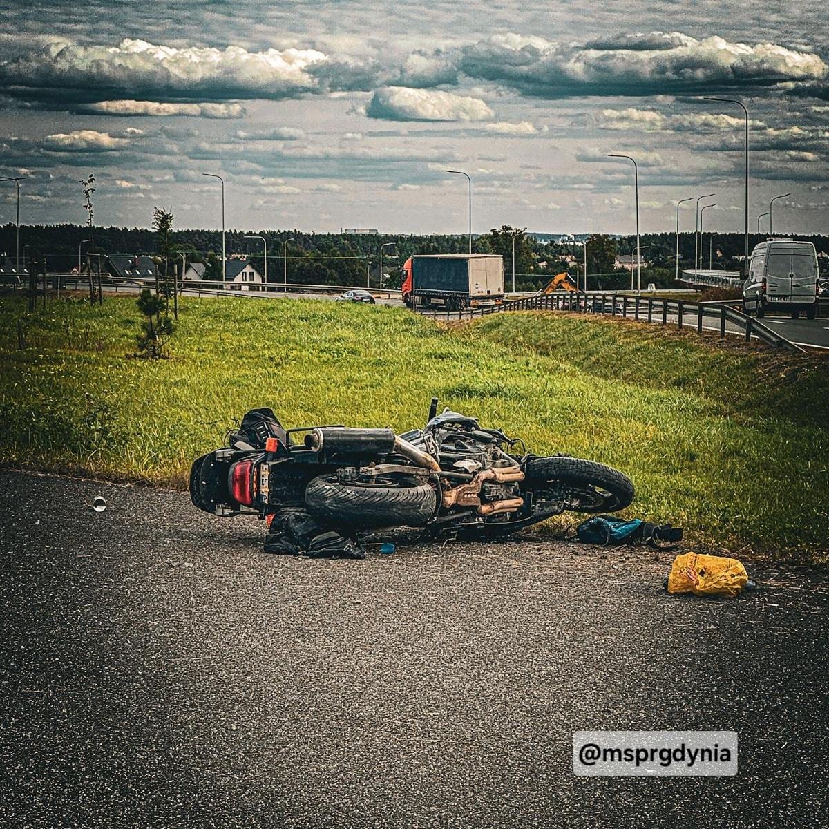 Do poważnego wypadku z udziałem motocyklisty doszło na Trasie Kaszubskiej. Mężczyzna, nie zauważając końca drogi, z ogromną siłą uderzył w barierki i metalowy słup. Motocyklista z urazem wielonarządowym został zabrany przez śmigłowiec LPR.