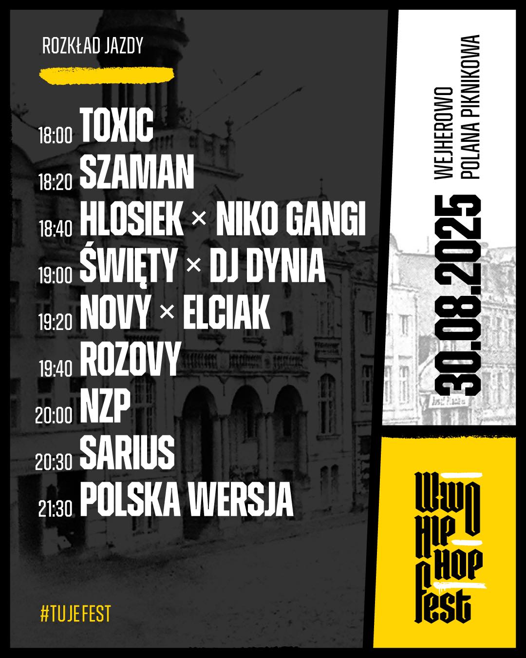 Oprócz headlinerów usłyszymy także mocny skład lokalnych i ogólnopolskich wykonawców: TOXIC, SZAMAN, HLOSIEK × NIKO GANGI, ŚWIĘTY × DJ DYNIA, NOVY × ELCIAK, ROZOVY, NZP.