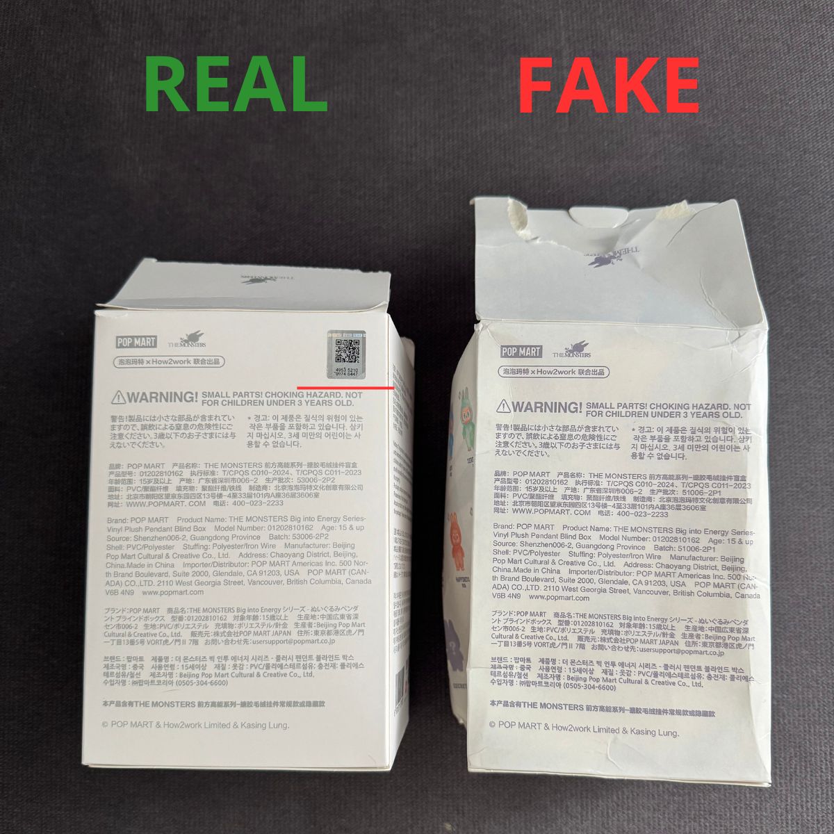 Podróbki często wykonane są z niskiej jakości materiałów, które mogą zawierać szkodliwe substancje chemiczne. Brakuje im jakości wykonania oryginalnych produktów Pop Mart, a ich wartość kolekcjonerska wynosi zero. Inwestując w kolekcję Labubu, autentyczność oznacza nie tylko jakość – to także bezpieczeństwo i długoterminowa wartość.