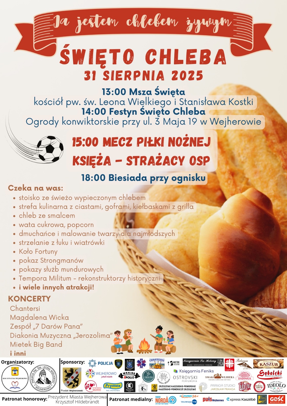 Spotkanie księży ze strażakami z Ochotniczych Straży Pożarnych będzie główną atrakcją Święta Chleba w Wejherowie. Festyn odbędzie się w niedzielę, 31 sierpnia 2025 roku.