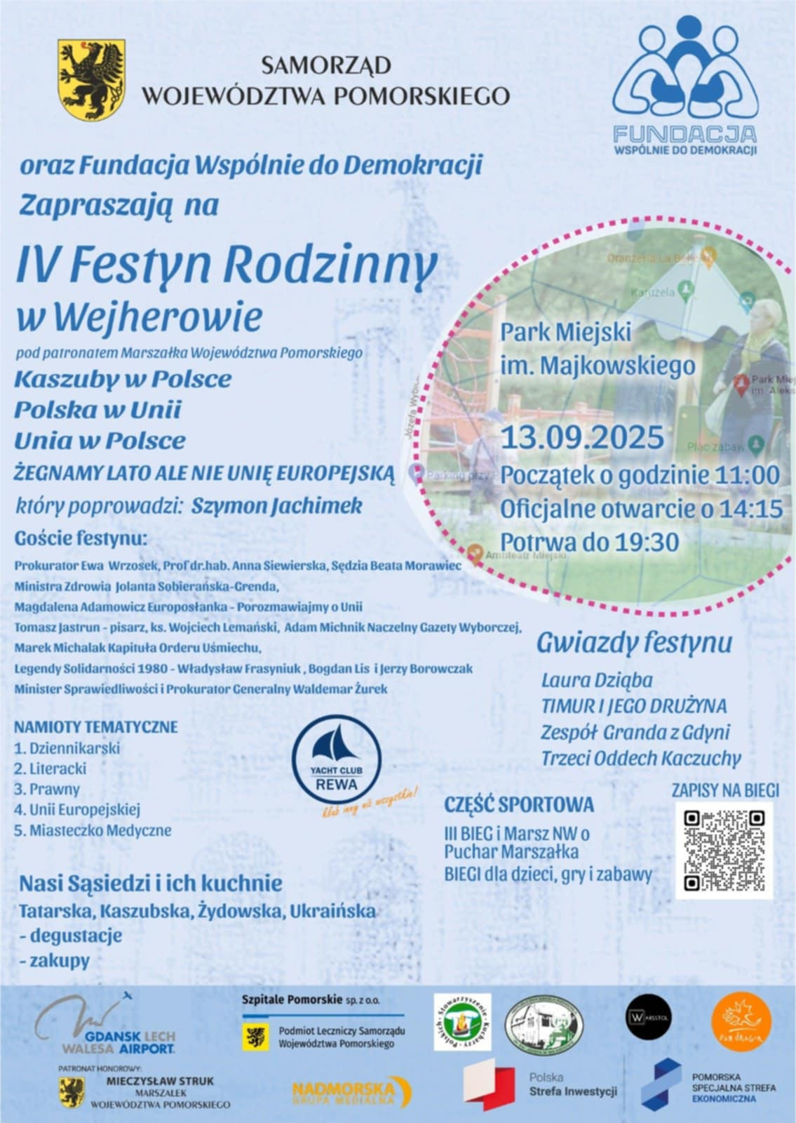 Wejherowo szykuje się na kolejne wyjątkowe wydarzenie! 13 września w Parku Miejskim im. Aleksandra Majkowskiego odbędzie się IV Festyn Rodzinny, organizowany przez Samorząd Województwa Pomorskiego oraz Fundację Wspólnie do Demokracji.