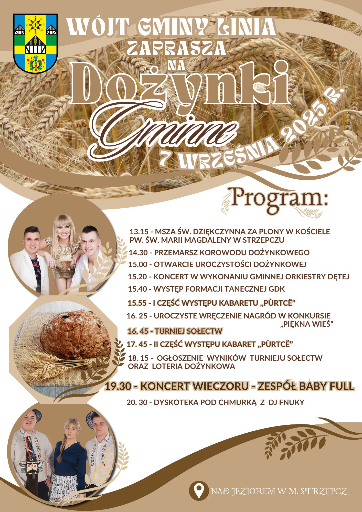 Gmina Linia szykuje wielkie świętowanie! Już w niedzielę, 7 września, nad jeziorem w Strzepczu odbędą się tradycyjne Dożynki Gminne, czyli uroczyste podziękowanie za tegoroczne plony.